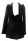 Lana barathea nera e velluto per questa giacca doppiopetto foderata con ampio scollo. Due bottoni rifiniti in oro con il logo orb, no tasche, solo taschino porta orologio sotto la linea del collo. Made in Italy nei primi anni 90'. Taglia IT 42. Perfettamente conservata.
