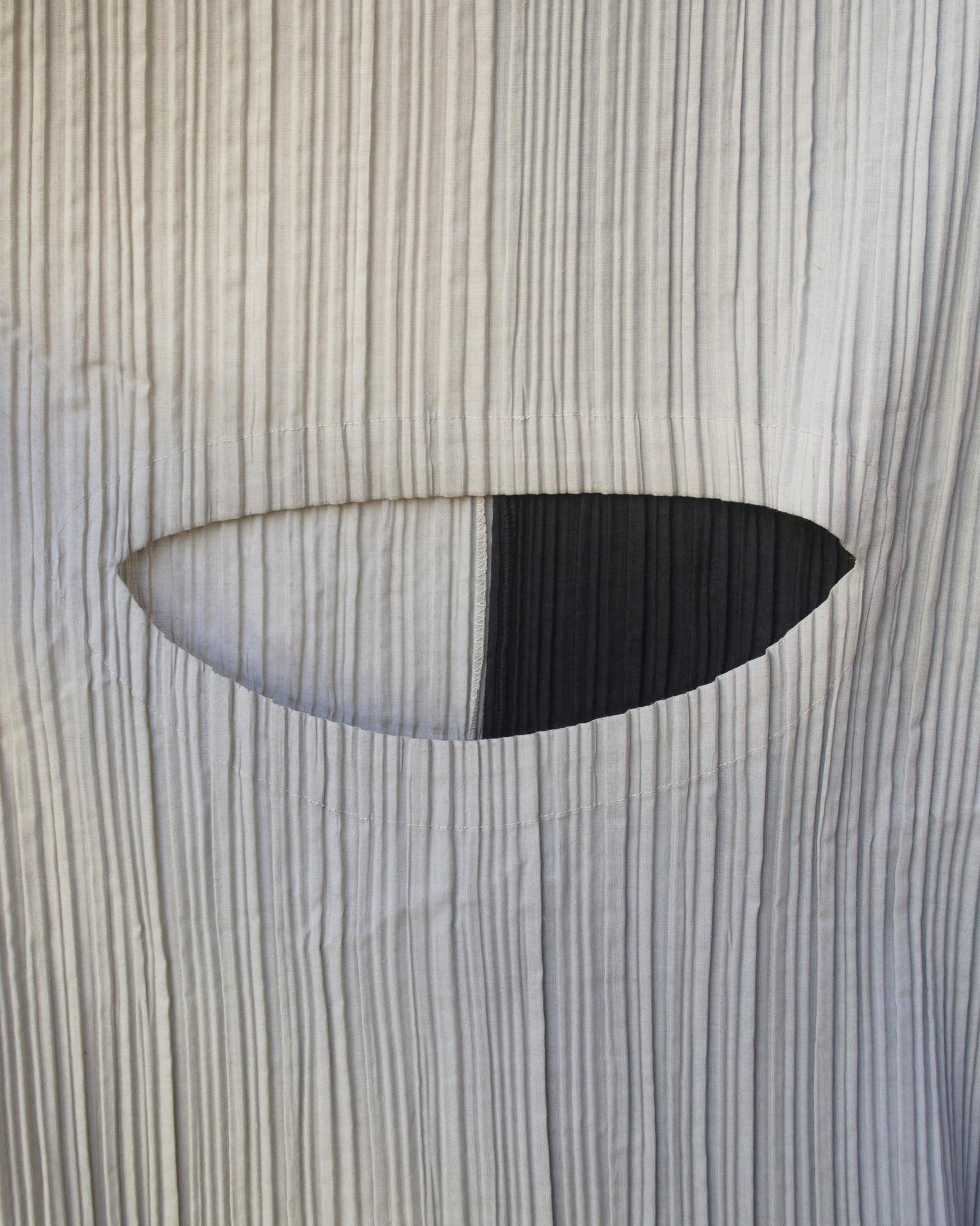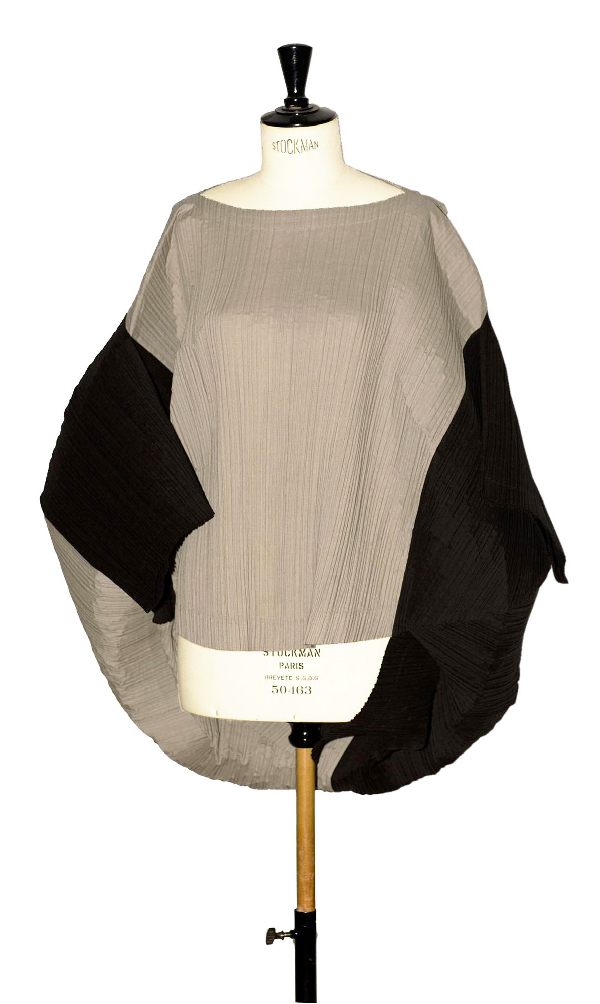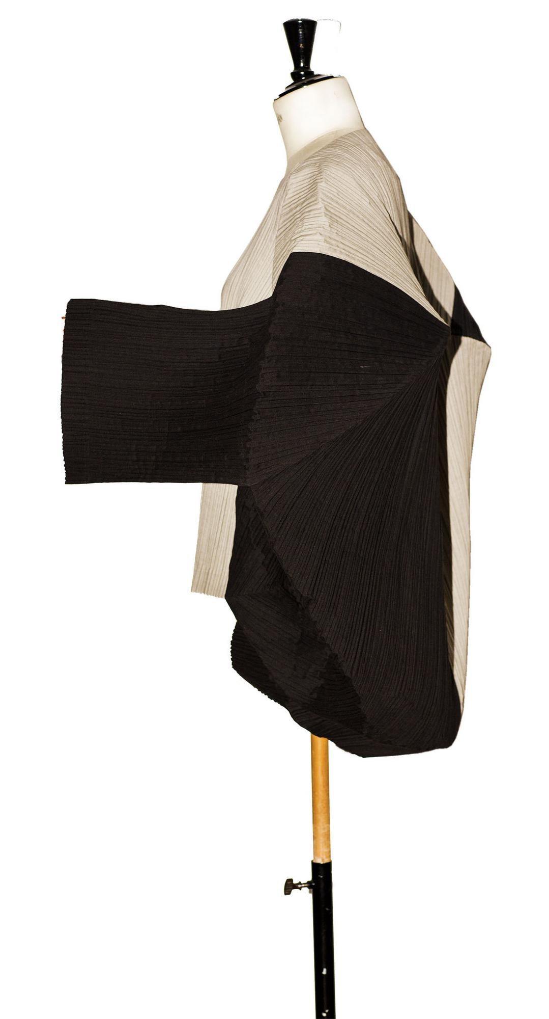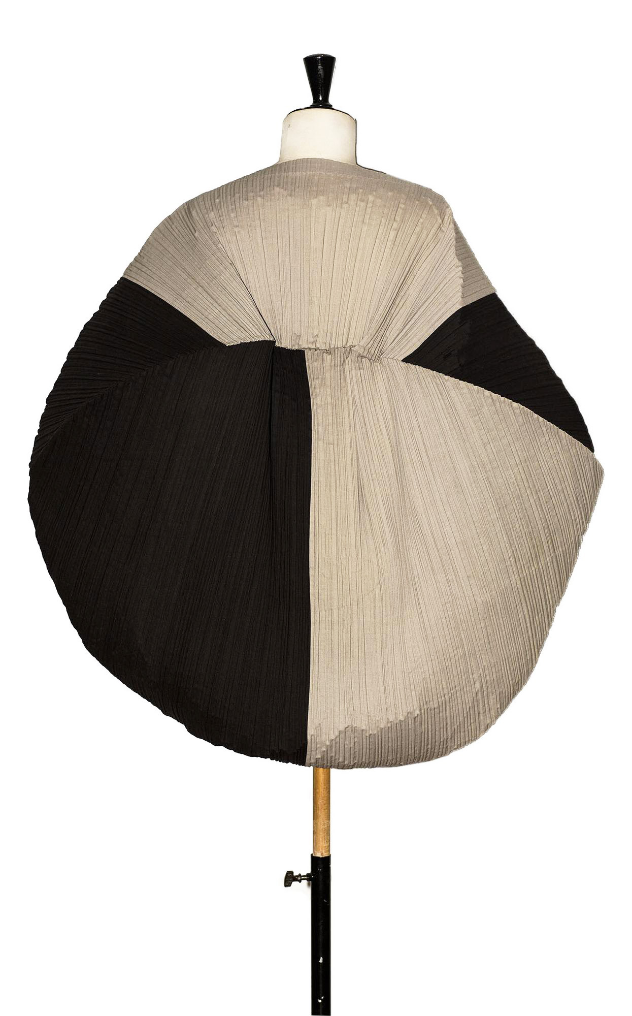Raro iconico abito tondo in plisset bicolore (grigio chiaro e nero) Prodotto in taglia unica indossabile per una taglia italiana come 42/44. Dai primi anni '90 Made in Japan. Perfettamente conservato.