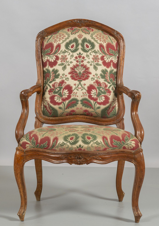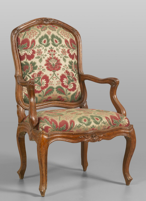# Poltrona Luigi XV in noce, schienale e seduta con pellacce centrali, Genova I metà sec.XVIII