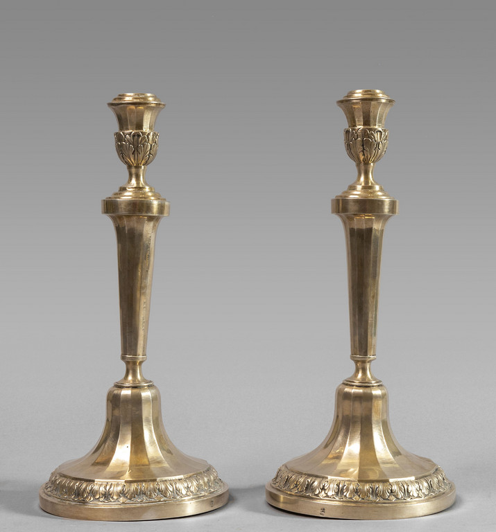 Coppia di candelieri in argento sbalzato, punzone della Torretta, Genova anno 1796