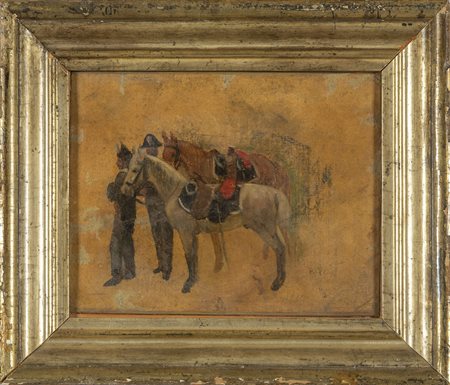"Carabinieri a cavallo" carta applicata su tela, fine sec.XIX