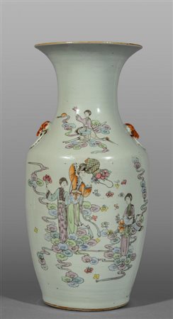 Vaso in porcellana bianca decorato con fanciulle tra i fiori, Cina inizi sec.XX