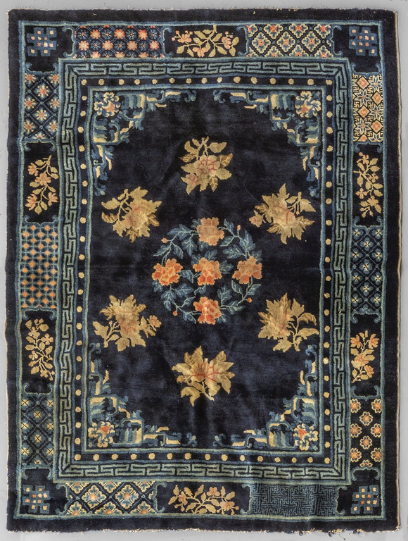 Lot 0507 | # Tapetto cinese a fondo blu con fiori policromi,