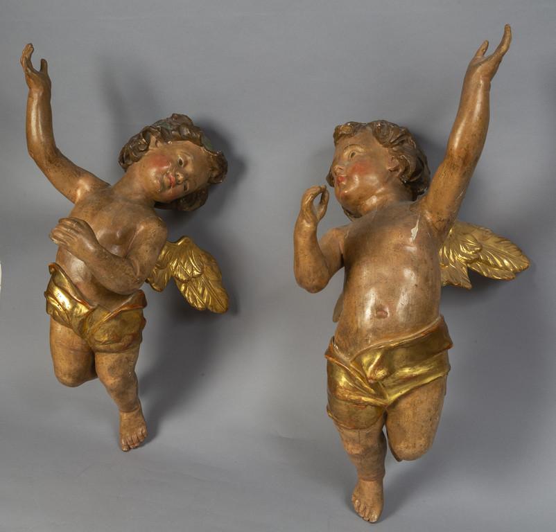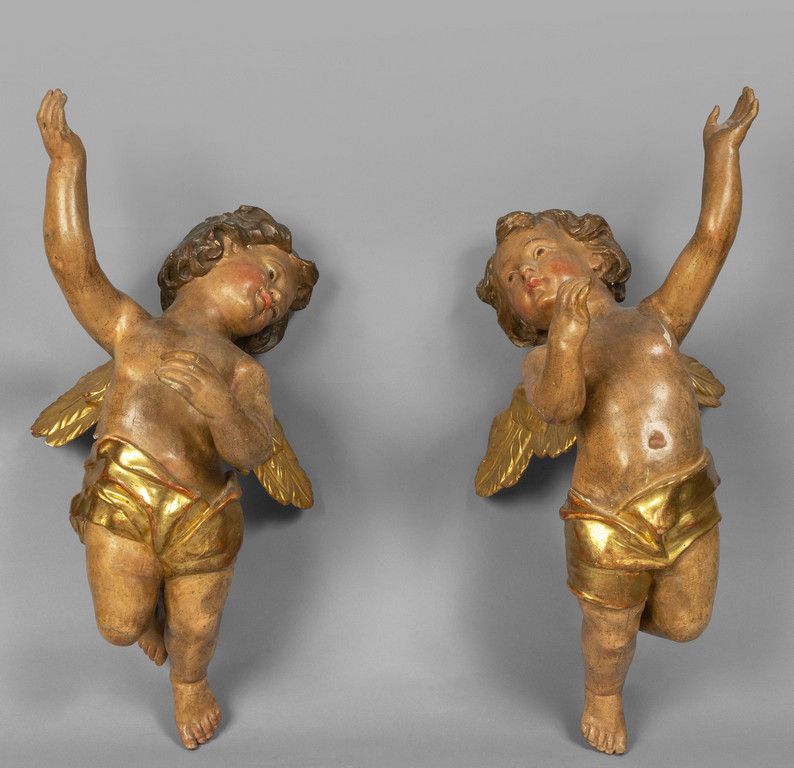Putti, coppia di sculture in legno intagliato e dorato, Centro Italia sec.XVIII