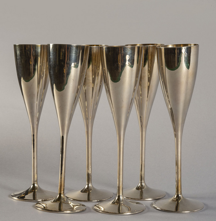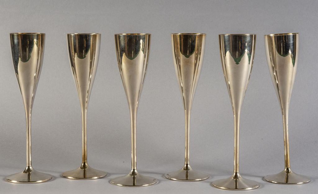 Lot 0850 | Sei flutes in argento<br>h.cm.23, gr.1014