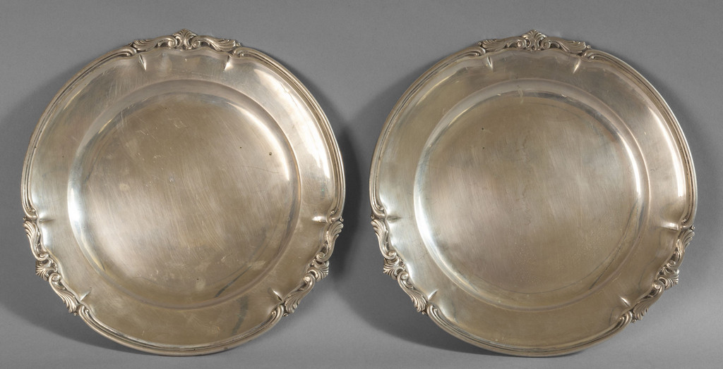 # Coppia di piatti in argento sbalzato in stile, argentiere Codevilla