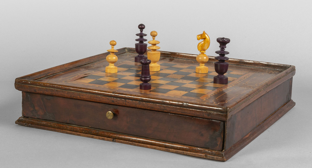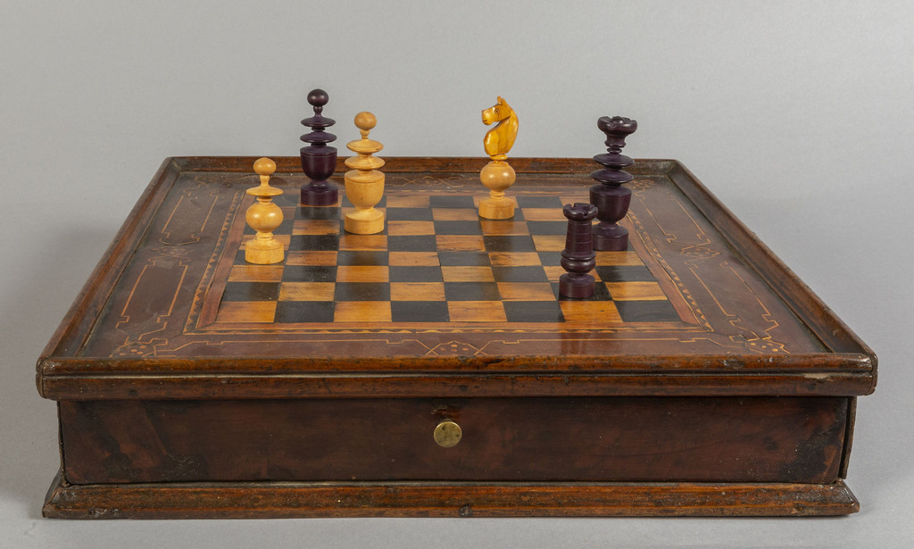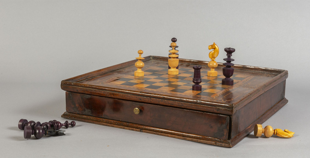 Lot 0940 | Scacchiera in legno intarsiato (completa),