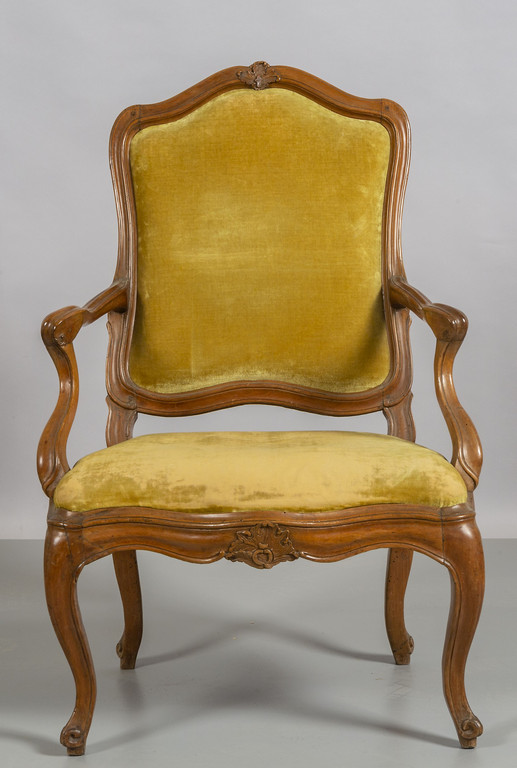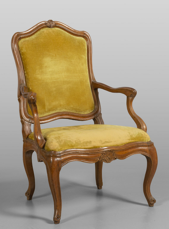 # Poltrona Luigi XV in noce, schienale e seduta con pellacce centrali, Genova I metà sec.XVIII