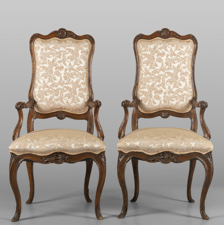Coppia di poltrone Luigi XV in legno intagliato, Italia Merdionale sec.XVIII