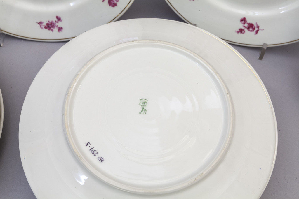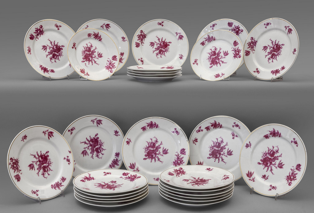 Venti piatti piani e 6 da frutta in porcellana di