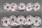 Venti piatti piani e 6 da frutta in porcellana di Limoges decorati a fiori rossi su fondo bianco