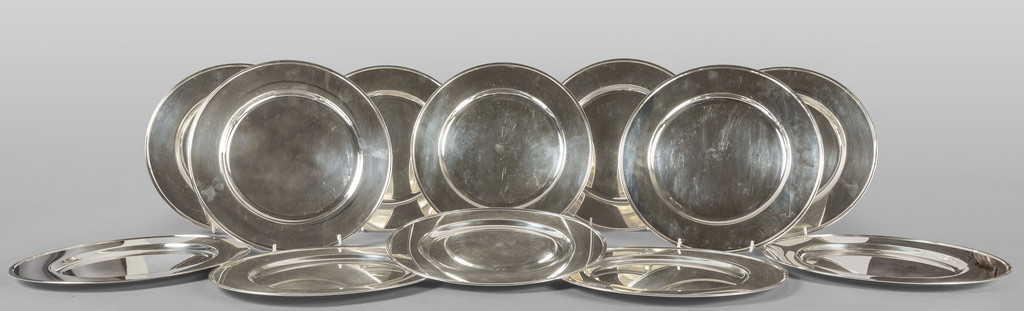 Dodici sottopiatti in argento<br>diam.cm.30,