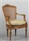 Poltrona in noce con cannè, cimasa scolpita con conchiglia, Genova sec.XVIII