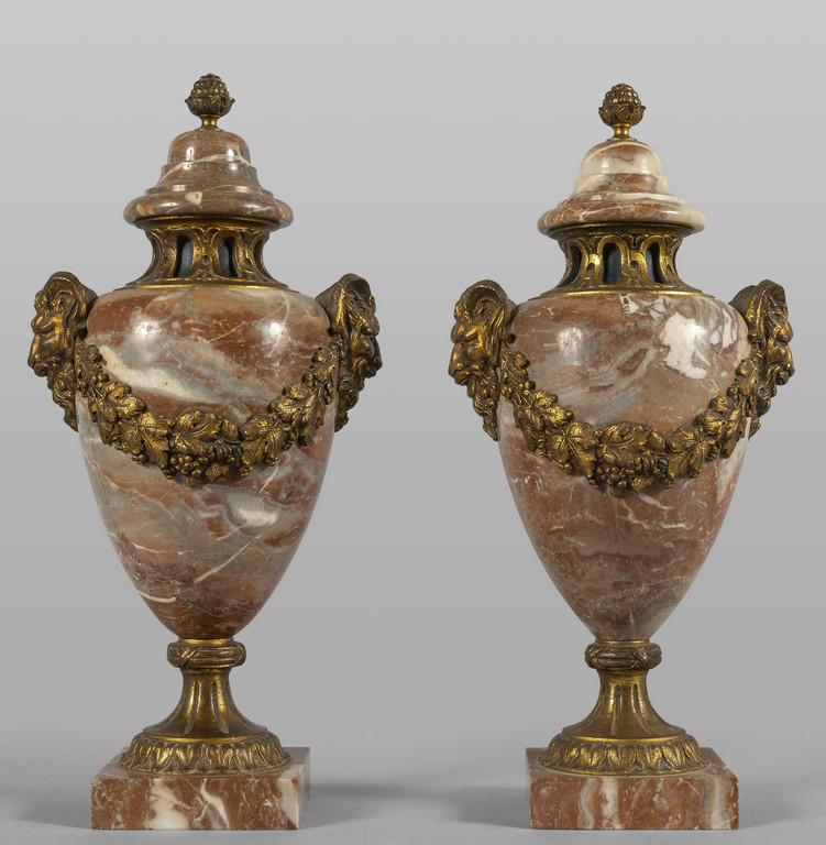 * Coppia di vasi Napoleone III in marmo con applicazioni in bronzo, Francia fine sec.XIX