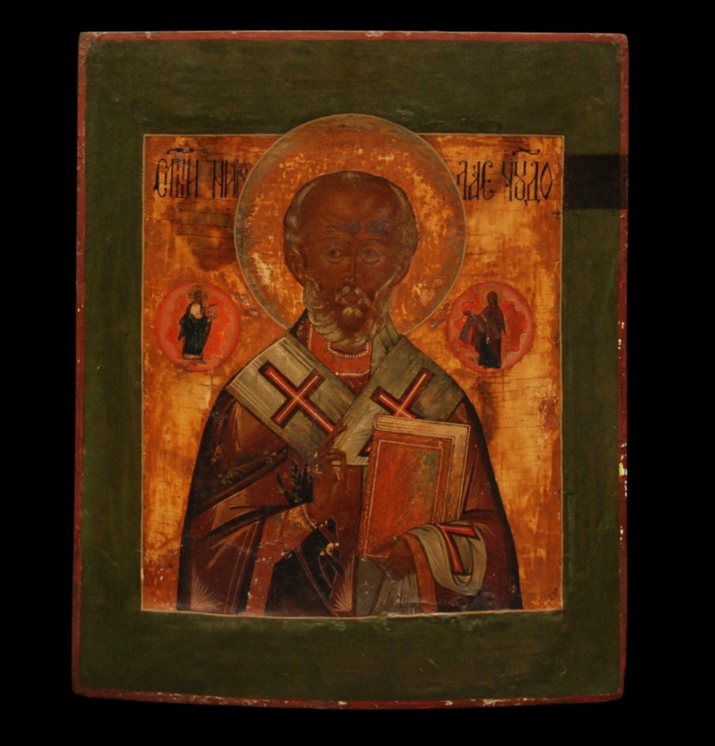 Icona tempera all'uovo su tavola raff. San Nicola, Russia, sec. XIX