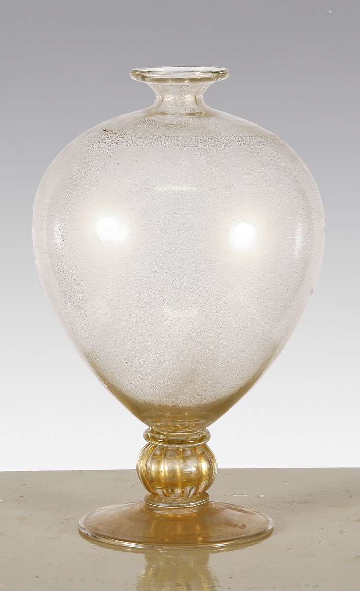 PRODUZIONE MURANESE. Vaso "Veronese". Vetro soffiato con avventurina. Vase "Veronese" in Murano’s blown glass with avventurine. Vetro di Murano. Cm 18,5x32. 1970 ca