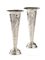 Coppia di vasi da fiori, Londra, 1892, in argento sbalzato a motivi floreali, volute e nastri intrecciati, ampio collo svasato e baccellato, fusto poggiante su basi circolari,alt. cm 28, basi appesantite (2)