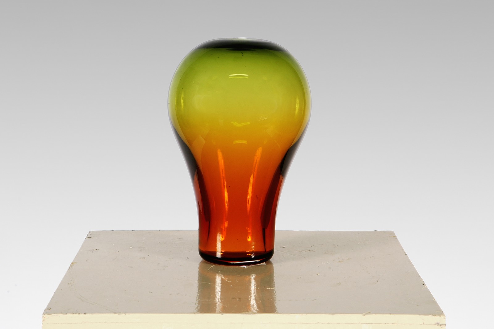 PRODUZIONE ITALIANA - ITALIAN WORK. Vaso in vetro di Murano sferico. Spherical vase in Murano’s glass. Vetro di Murano. Cm 18x26. Firmato Imago F3 International. Signed Imago F3 International. 1989.