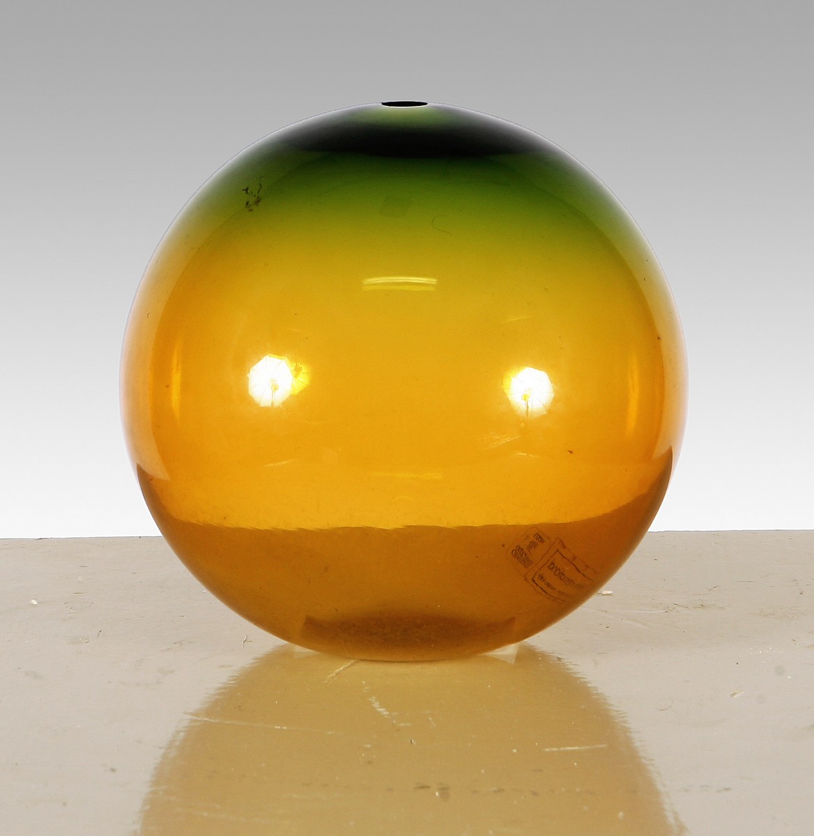 PRODUZIONE ITALIANA - ITALIAN WORK. Vaso in vetro di Murano a sfera. Spherical vase in Murano’s glass. Vetro di Murano. Cm 17x18. Firmato Imago F3 International. Signed Imago F3 International. 1989.