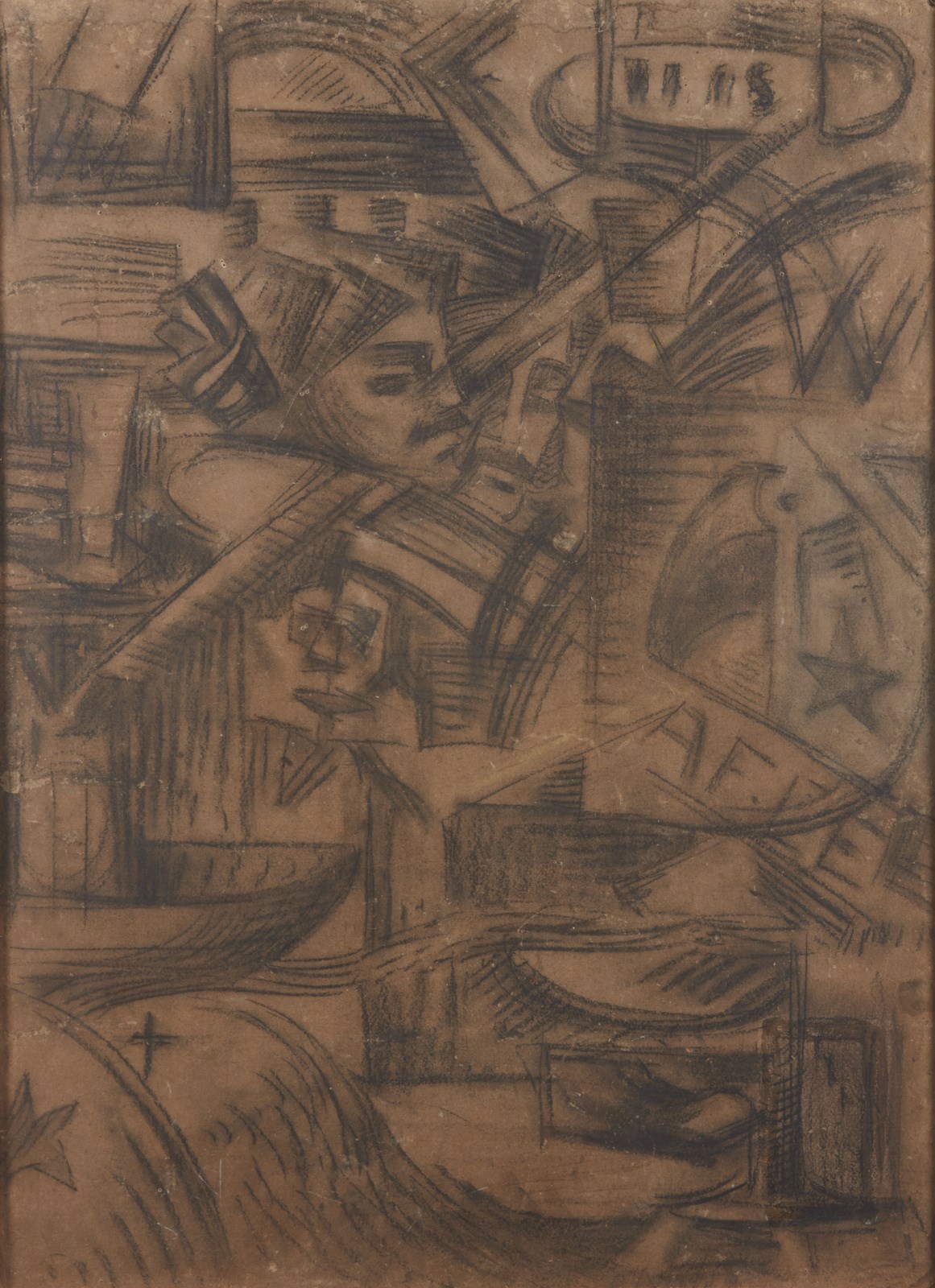 NOTTE EMILIO (1891 - 1982) Senza titolo. Pastelli e carboncino su carta. Cm 62,00 x 85,00. Provenienza: Collezione privata, Roma. Difetti. Cornice presente