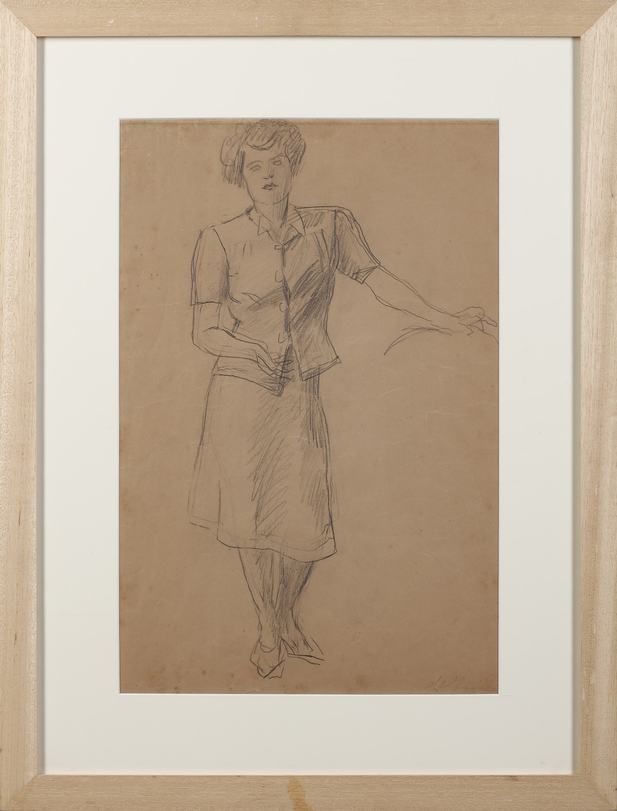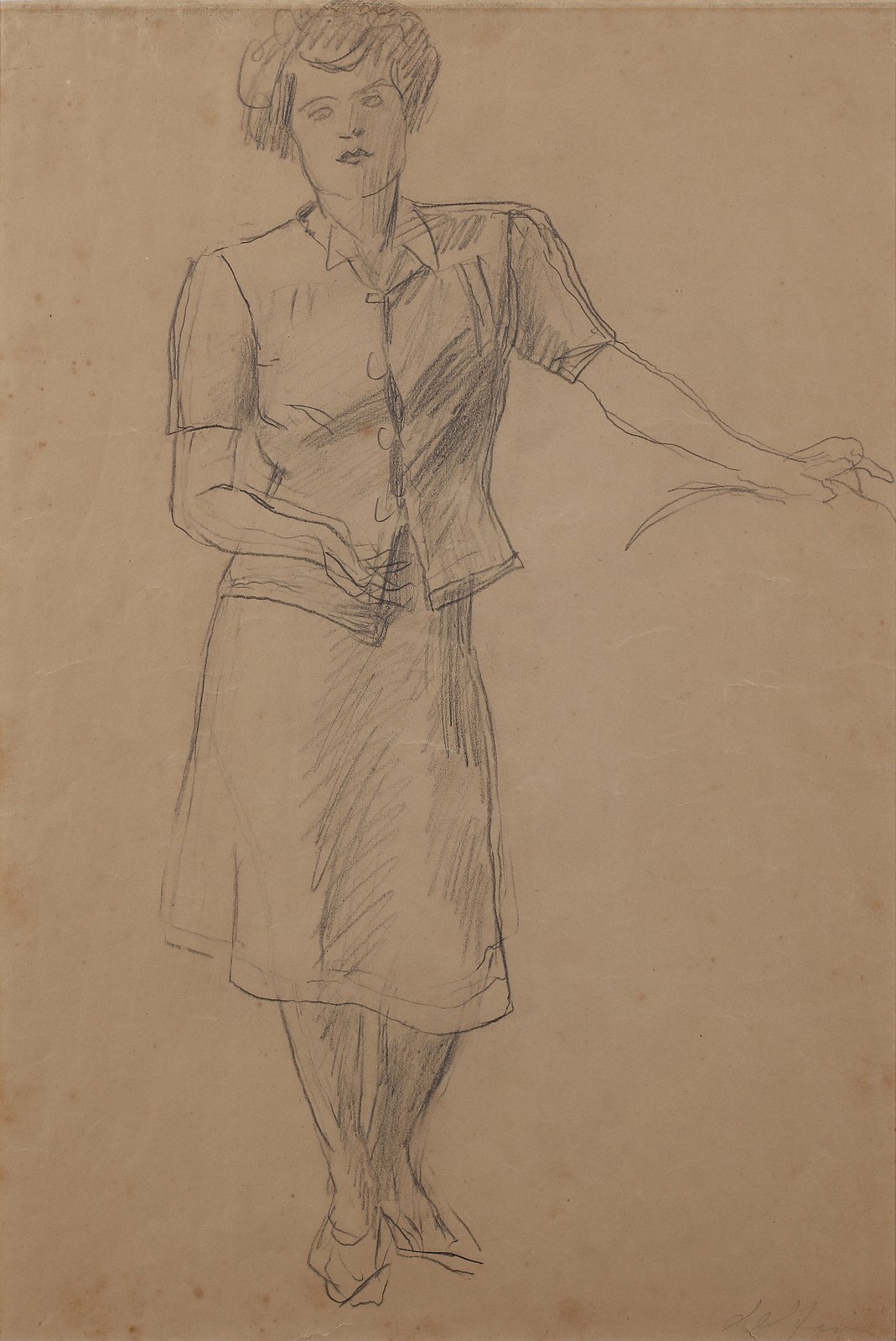 DE FIORI ERNESTO (1884 - 1945) Donna. 1941. mista su carta. Cm 31,00 x 46,50. Firma a matita in basso a destra. Lievi difetti. Cornice presente