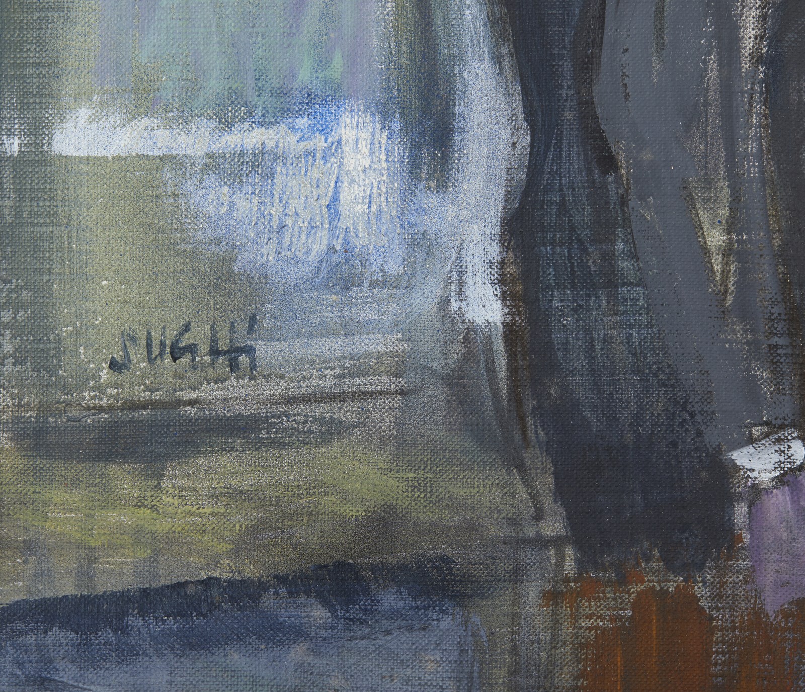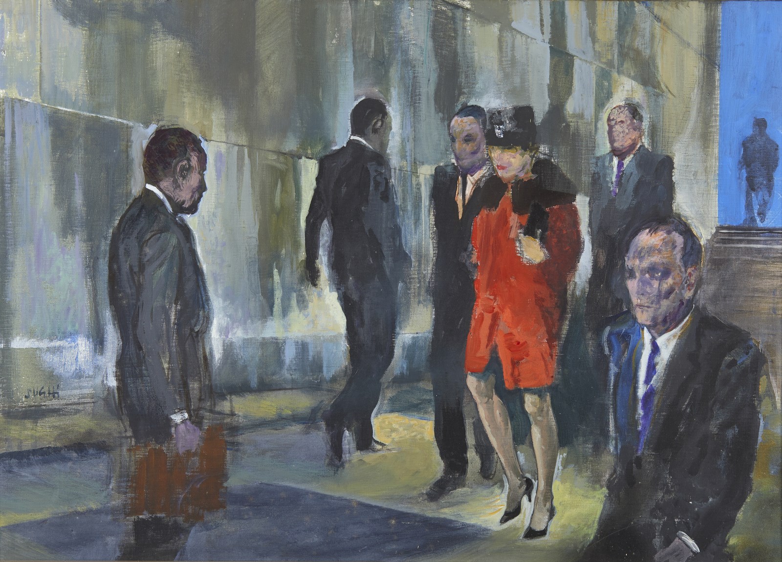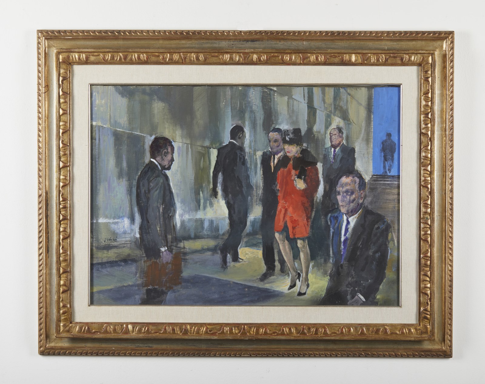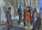 SUGHI ALBERTO (n. 1928) Per la strada. 1990. Olio su tela . Cm 70,00 x 50,00. Firma in basso a sinistra. Autentica dell'artista su fotografia con cartiglio della Galleria Spagnoli, Firenze. Opera in corso di archiviazione presso l'Associazione Culturale Archivio Sughi. Lievi difetti. . Cornice presente