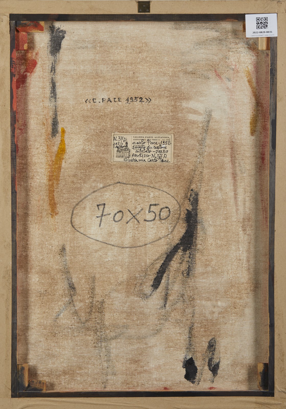 PACE CARLO (1937 - 2011) Senza titolo. . Smalto su cartone intelato. Cm 50,00 x 70,00. Al retro firma, anno e cartiglio descrittivo Galleria d'arte Alexandria, Alessandria.