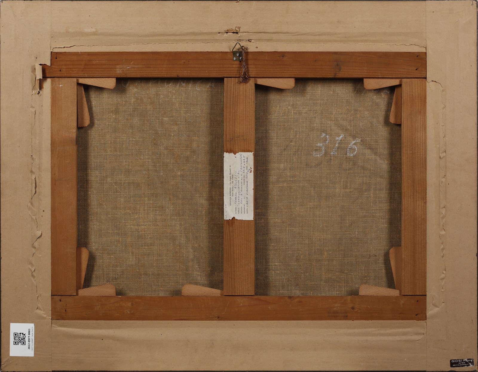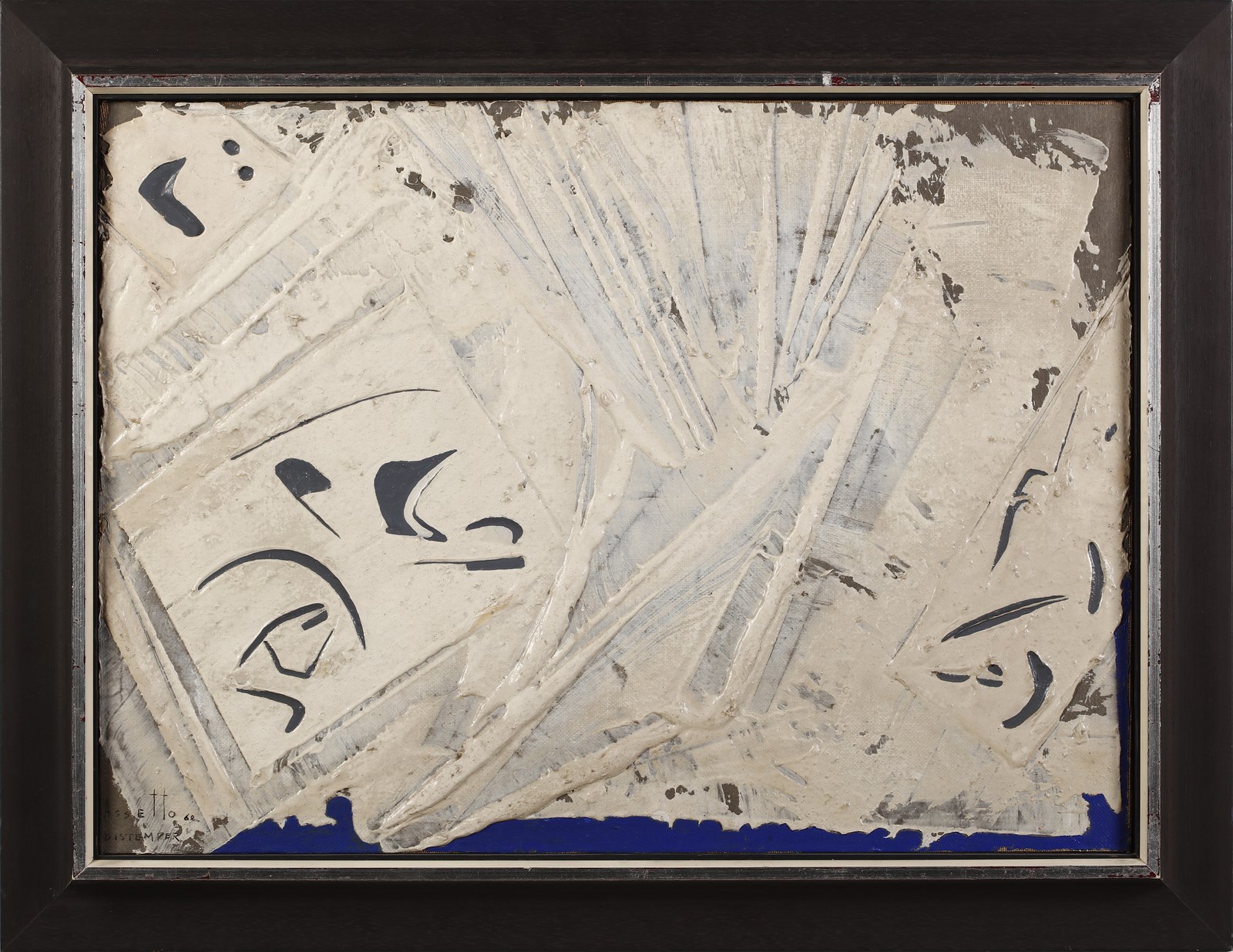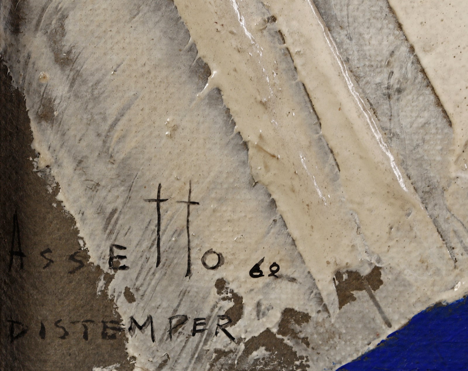 ASSETTO FRANCO (1911 - 1991) Communication n°2 (distemper). 1962. Tecnica mista su carta su tela. Cm 65,00 x 49,00. Firma, data e titolo in basso a sinistra. Titolo e data al retro. Cornice presente