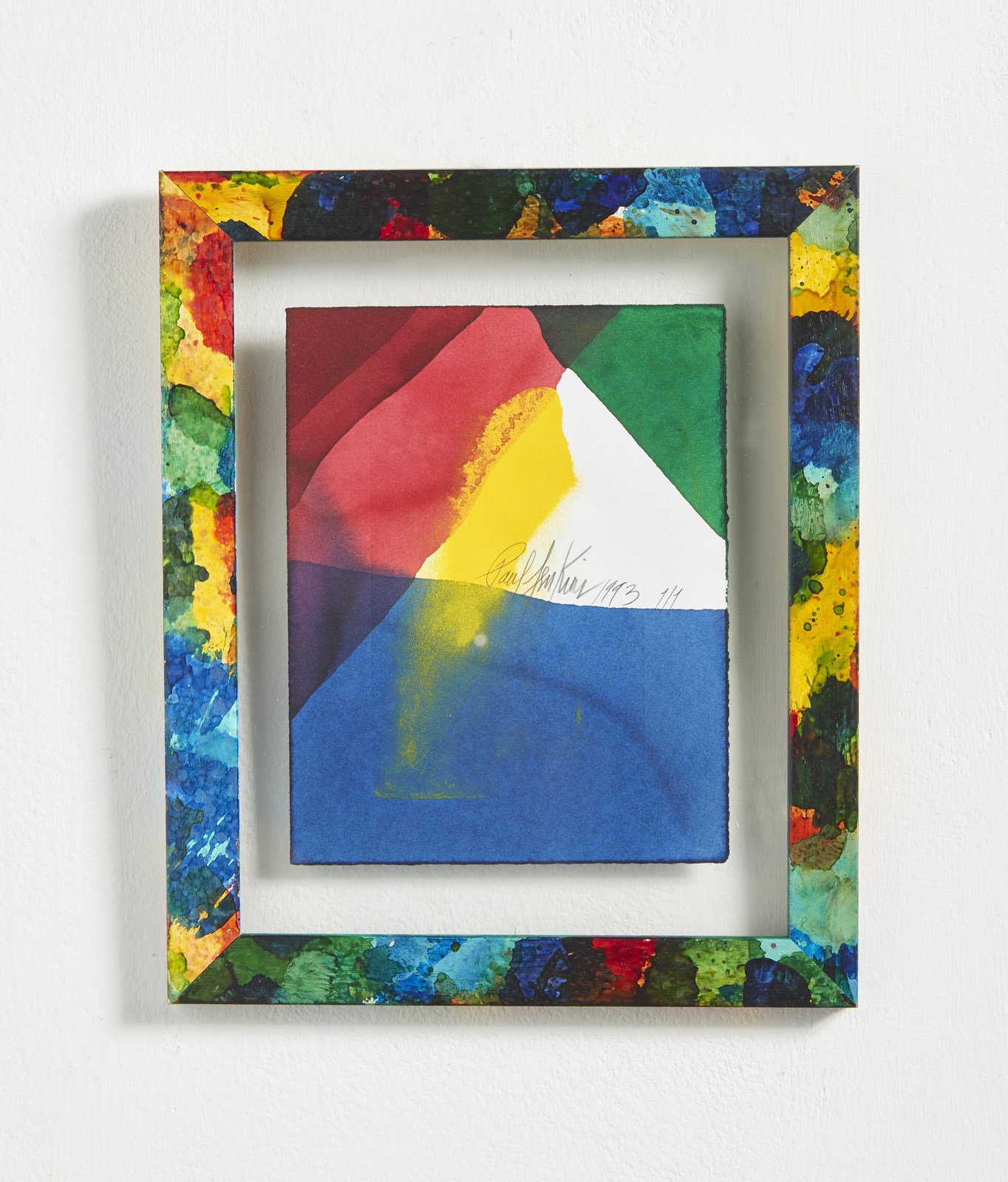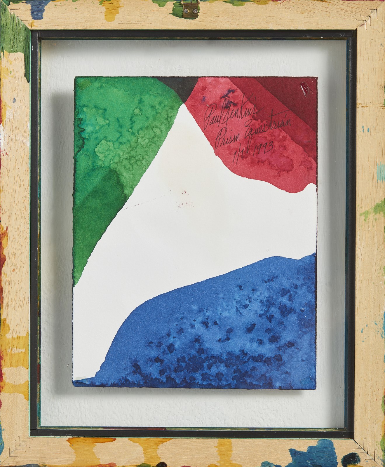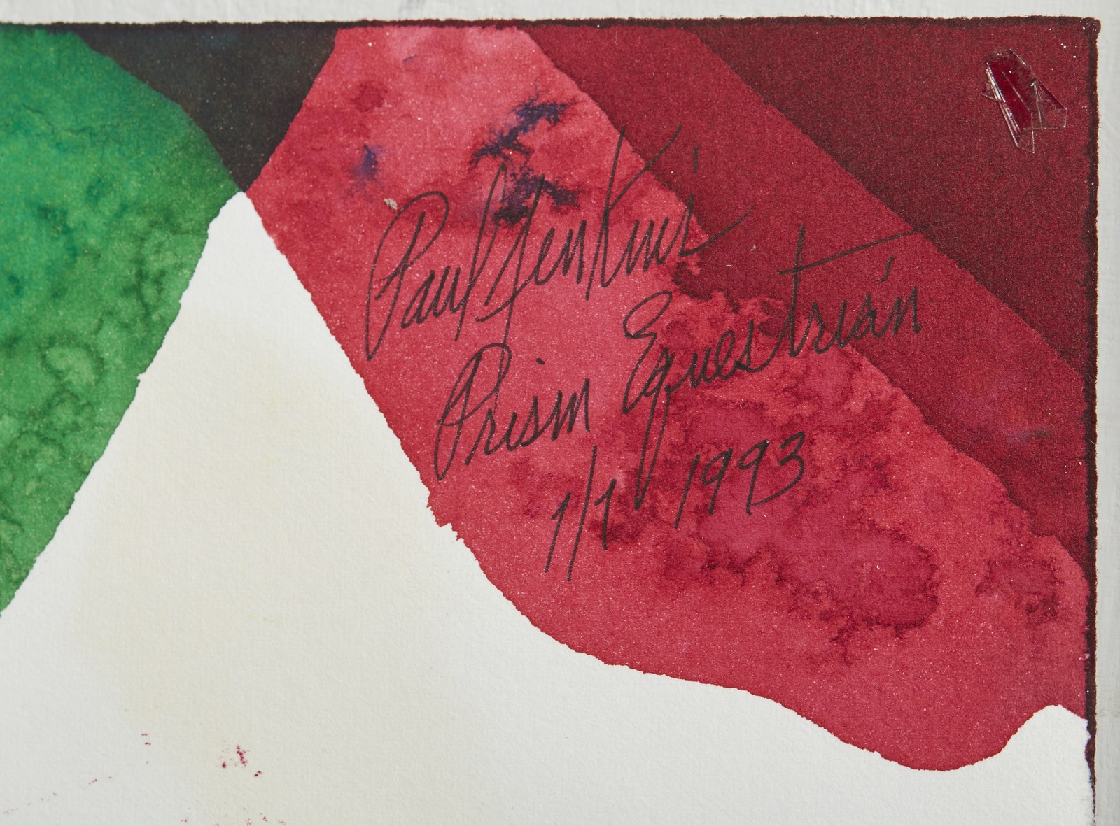 JENKINS PAUL (1923 - 2012) Prism Equestrian. 1993. tecniche miste su carta. Cm 16,30 x 20,80. 1/1. Doppia opera. Fronte, litografia: firma e anno a matita al centro. Retro, acquerello: firma, titolo e anno in alto a destra. Certificato di autenticità della Hus Gallery, Parigi. Lievi difetti.