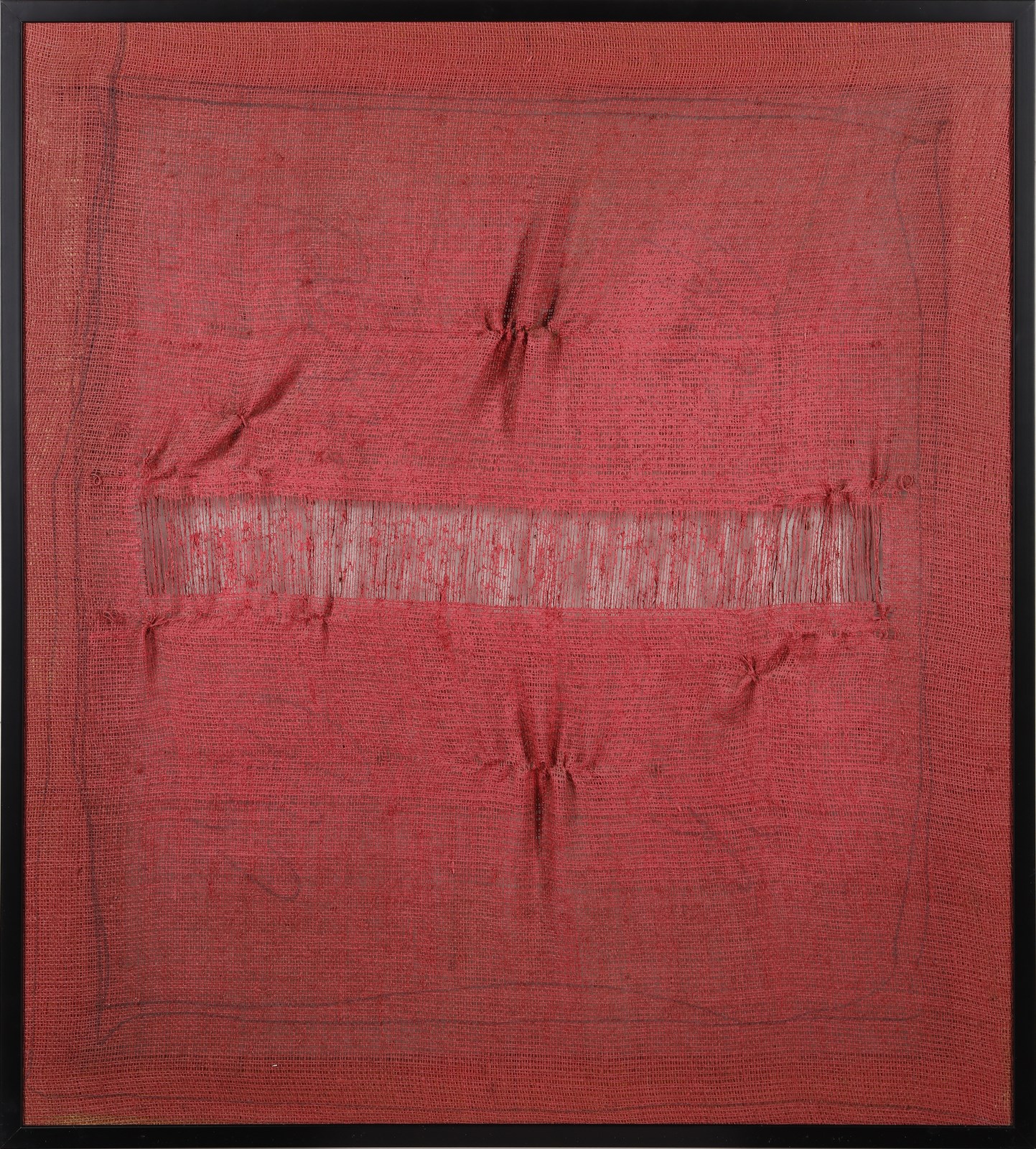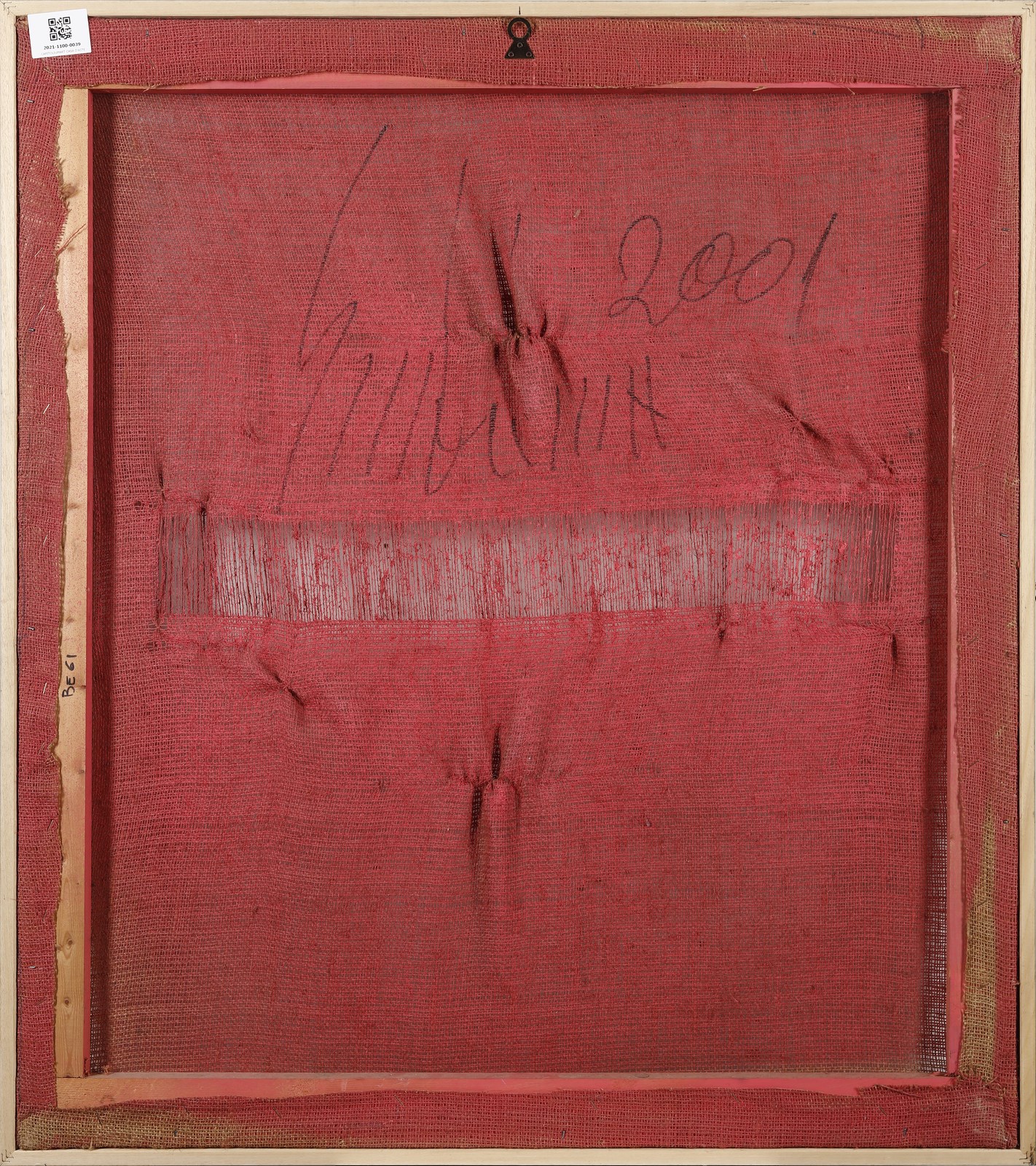 EMBLEMA SALVATORE (1929 - 2006) Senza titolo. 2001. Tecnica mista su tela. Cm 90,00 x 99,00. Al retro firma e anno. Opera archiviata presso l'Archivio Salvatore Emblema, Terzigno (Na), come da documentazione fotografica allegata all'opera riportante il relativo numero d'inventario. Provenienza: Galleria Bosi, Roma; Collezione privata, Roma. Cornice presente