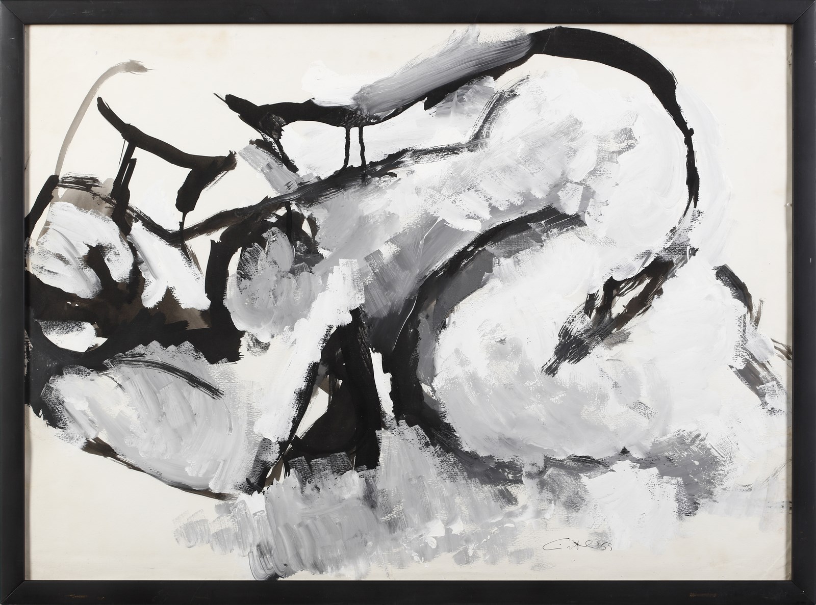 CINTOLI CLAUDIO (1935 - 1978) Schizzi di memoria. 1959. Tecnica mista su carta. Cm 75,00 x 55,00. Firma e anno in basso a destra. Autentica su fotografia di Vittorio Cintoli. Cornice presente
