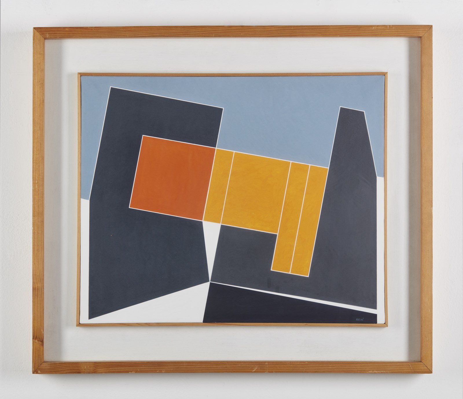 NATIVI GUALTIERO (1921 - 1999) Equilibrio. . 1980. Olio su tela . Cm 53,00 x 43,00. Firma in basso a destra. Al retro titolo, firma e anno. Autentica dell'artista su fotografia. Cornice presente