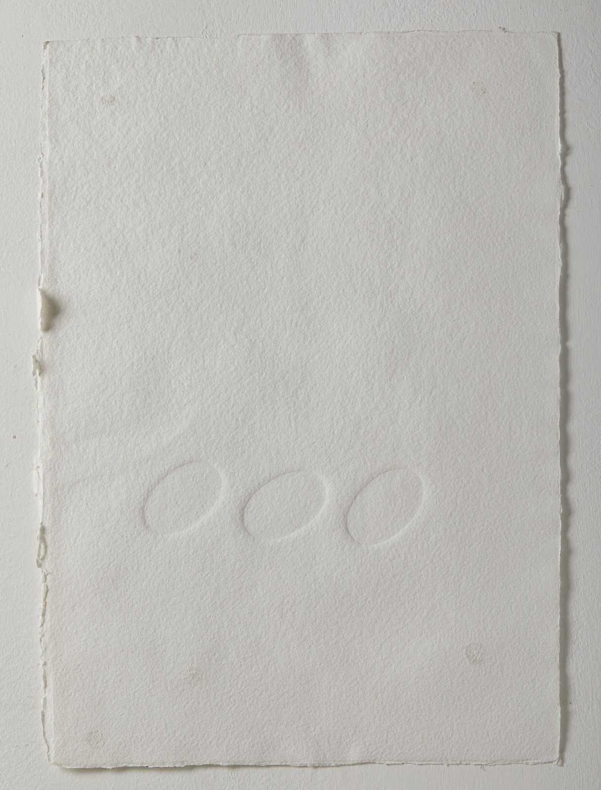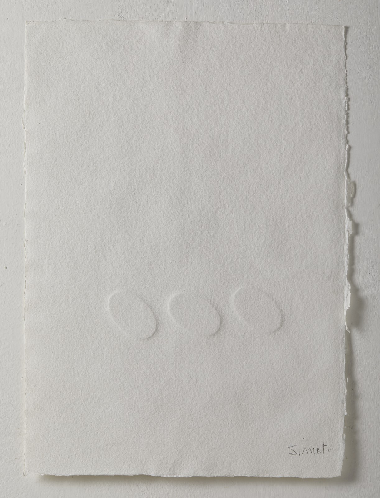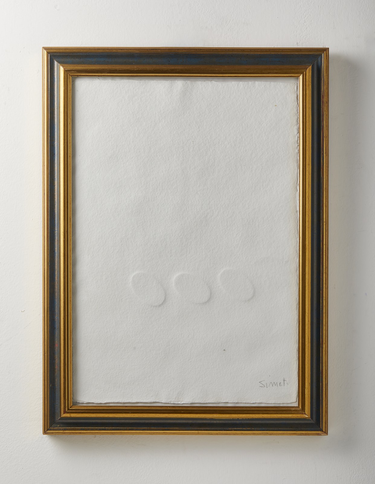 SIMETI TURI (n. 1929) 3 ovali bianchi. 2016. Calcografia. Cm 34,00 x 48,00. Firma in basso a destra. Opera archiviata presso l'Archivio Turi Simeti, Milano, come da documentazione fotografica allegata all'opera riportante il relativo numero d'inventario e la firma dell'artista. Cornice presente
