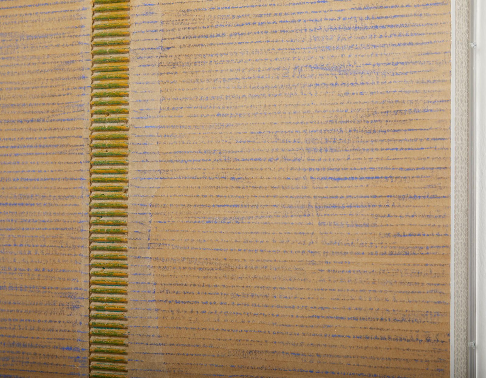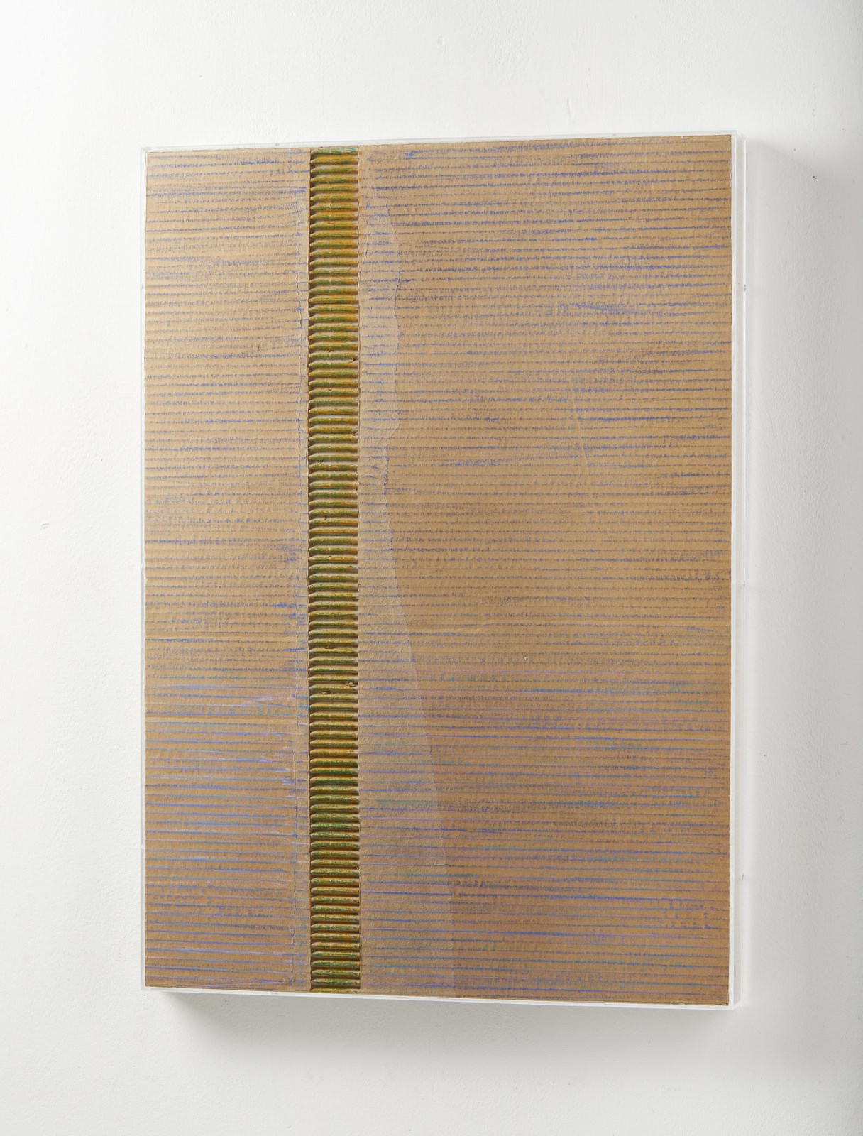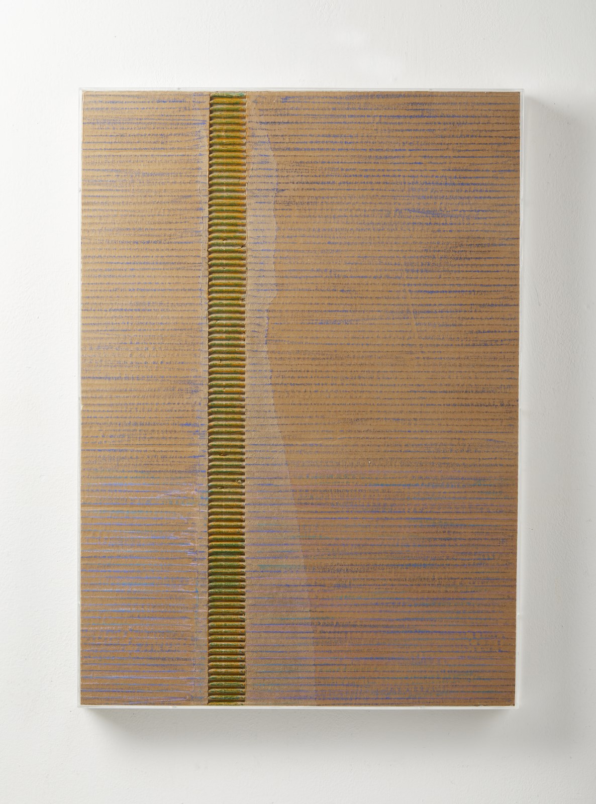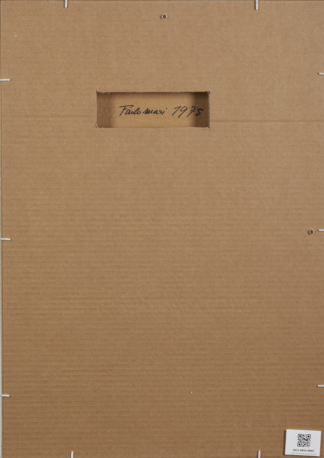 MASI PAOLO (n. 1933) Senza titolo. . 1975. Tecnica mista su cartone. Cm 50,50 x 70,50. Firma e anno al retro. Entro teca di plexiglass. Autentica dell'artista su fotografia.