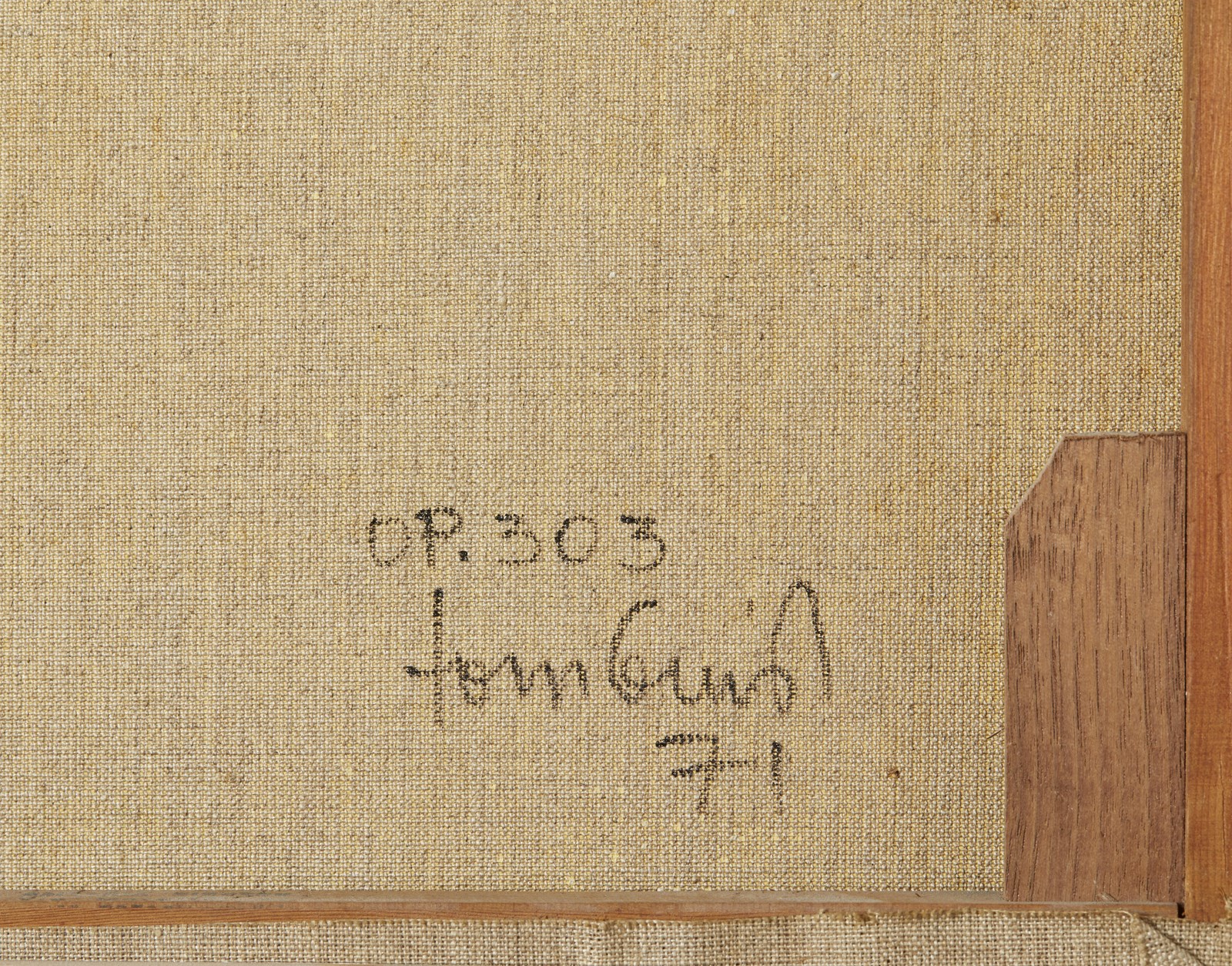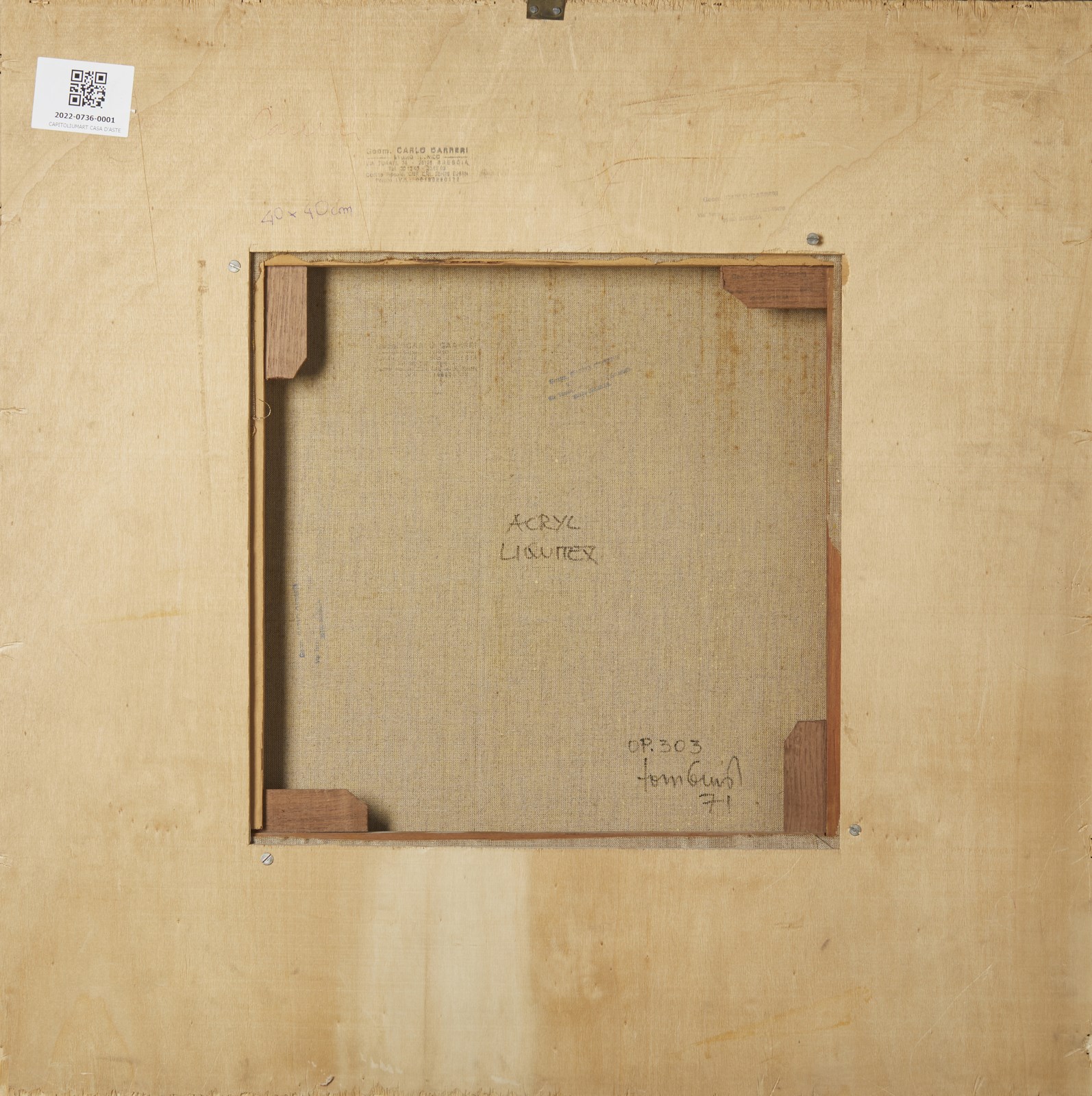 TORNQUIST JORRIT (n. 1938) Op.303. 1971. Acrilico su tela. Cm 40,00 x 40,00. Al retro titolo, firma e anno. Provenienza: Collezione Carreri; Collezione privata, Brescia. Opera archiviata presso l'Archivio Jorrit Tornquist come da documentazione fotografica allegata all'opera riportante il relativo numero d'inventario. Cornice presente