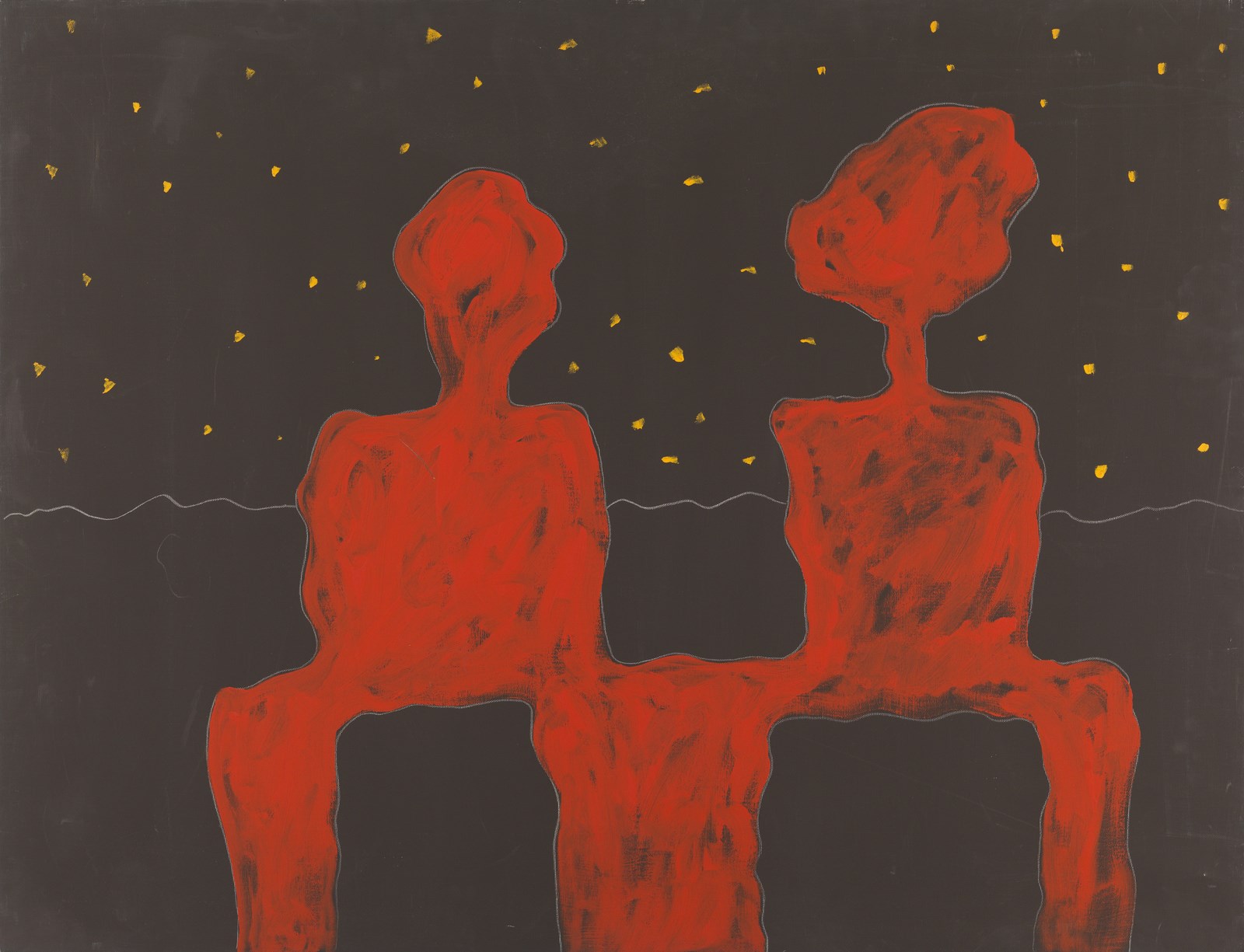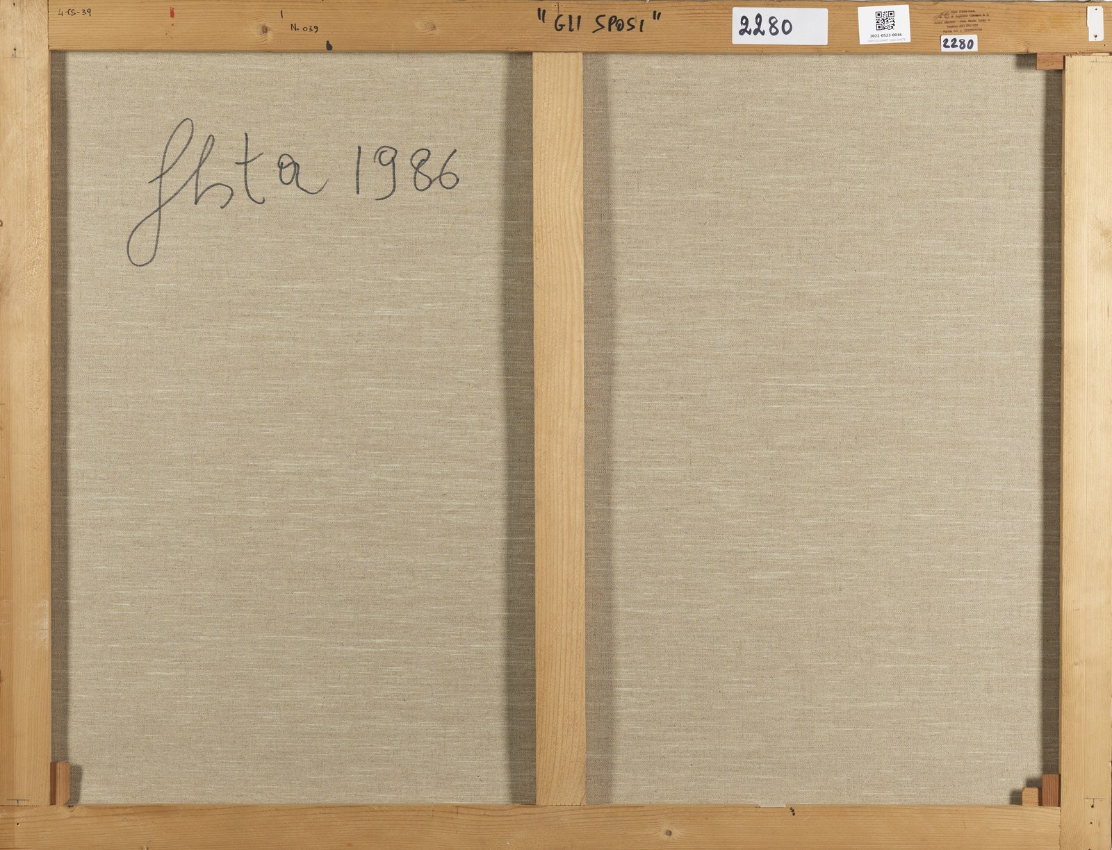 FESTA TANO (1938 - 1988) Gli sposi. 1986. Tecnica mista su tela. Cm 116,00 x 89,00. Al retro titolo, firma e anno. Opera archiviata presso l'Archivio Tano Festa - Anita Festa, come da documentazione fotografica allegata all'opera riportante il relativo numero d'inventario.