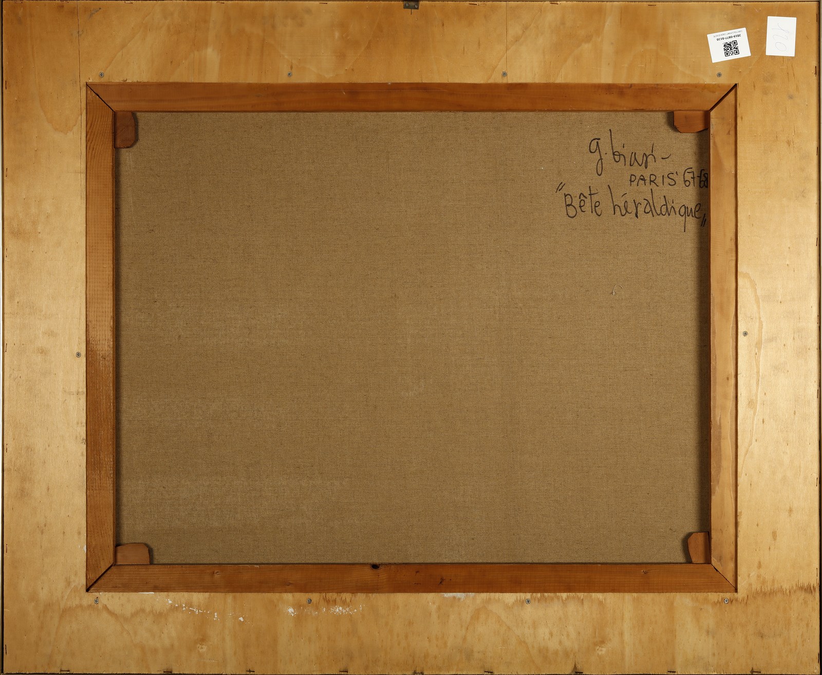 BIASI GUIDO (1933 - 1983) Bete heraldique. . Olio su tela . Cm 90,00 x 70,00. Al retro titolo, firma e anno. 1967-1968. . Cornice presente