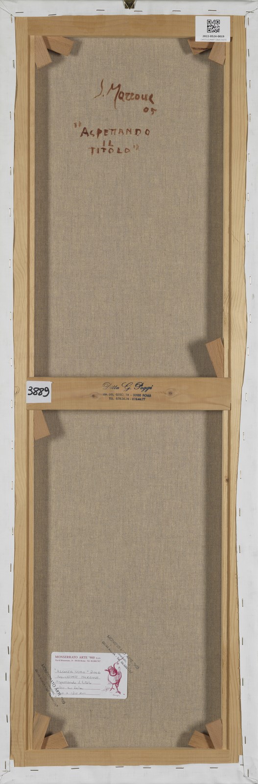MARRONE SALVATORE (n. 1948) Aspettando il titolo. 2005. Olio su tela . Cm 40,00 x 120,00. Al retro titolo, frima e anno. Provenienza: Collezione privata, Roma.