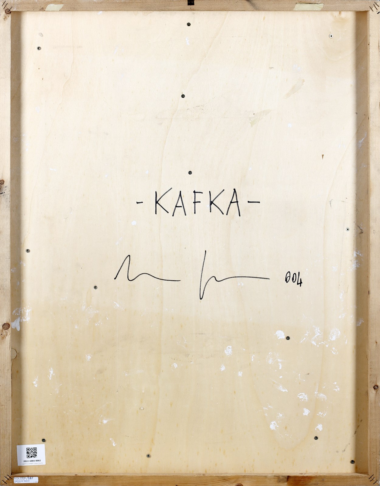 CONSIGLIO MARIO (n. 1968) Kafka. Tecnica mista su tavola. Cm 71,00 x 91,00. Al retro titolo e firma. Cornice presente