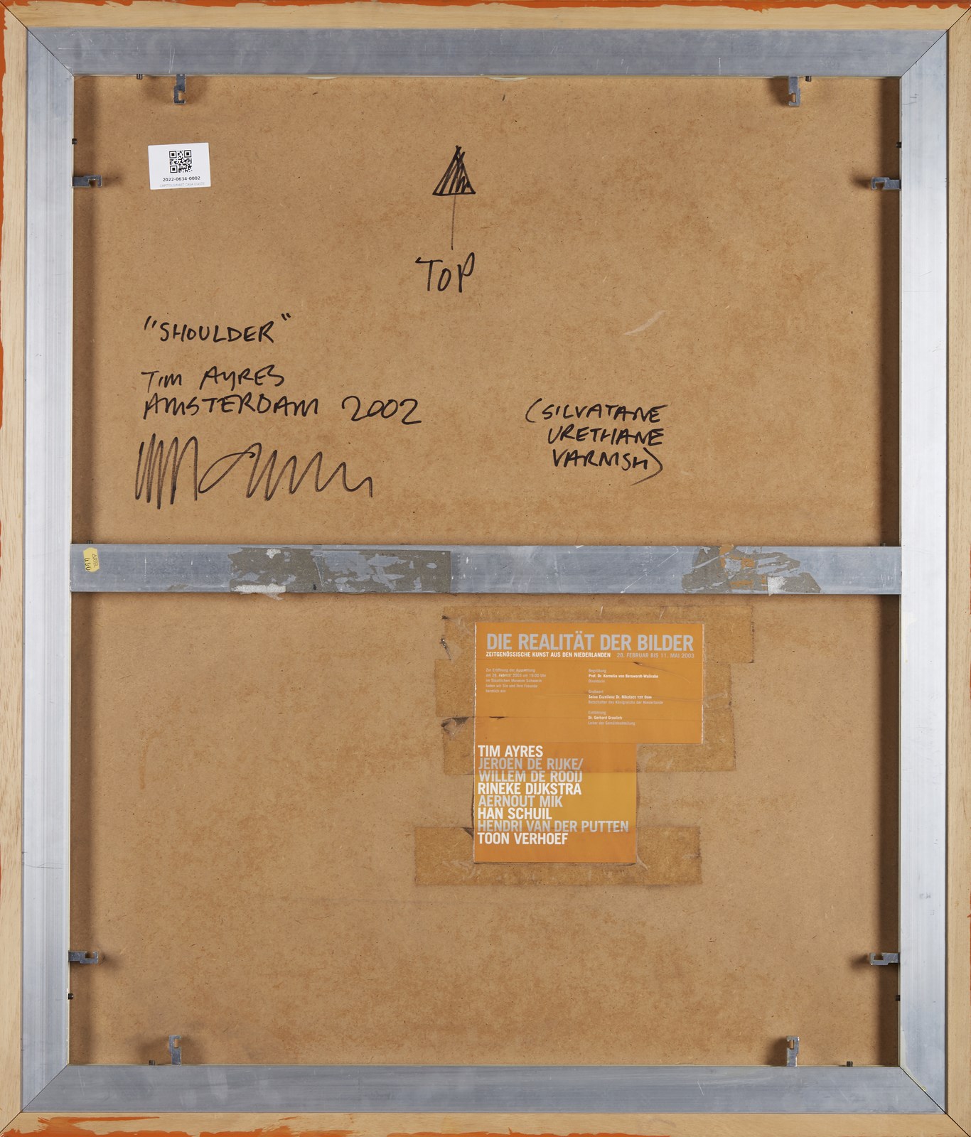 AYRES TIM (n. 1965) Shoulder. 2002. Acrilico su tavola. Cm 100,00 x 86,00. Firma, titolo e anno al retro. Lievi difetti.