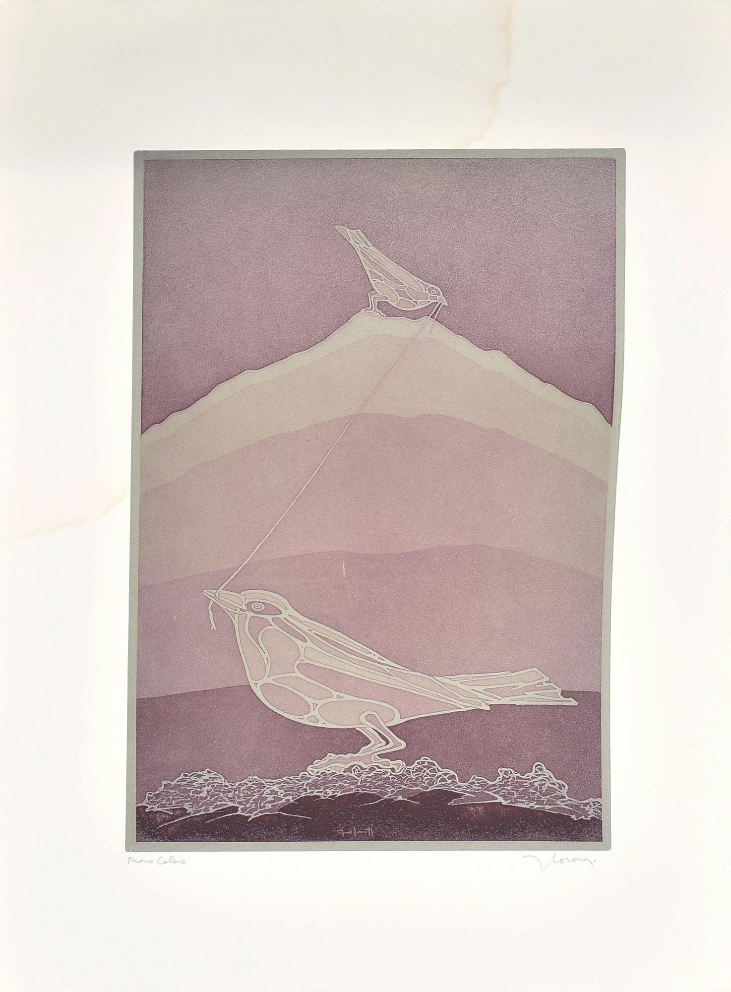 Francesco Casorati UCCELLINI incisione su carta, battuta cm 49x31,5, su...