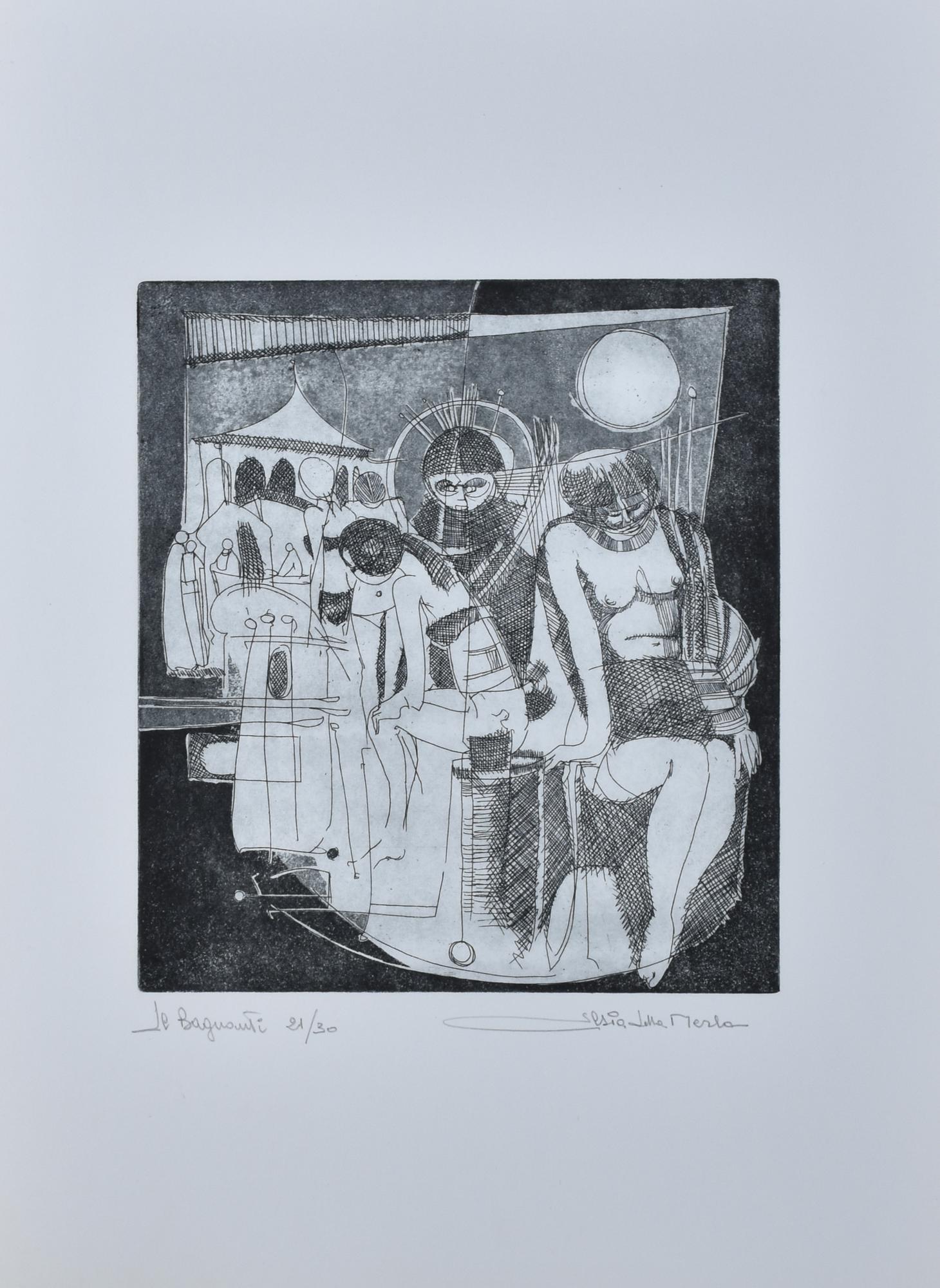 Gianni Sesia della Merla LE BAGNANTI incisione su carta, battuta cm 25x22; su...