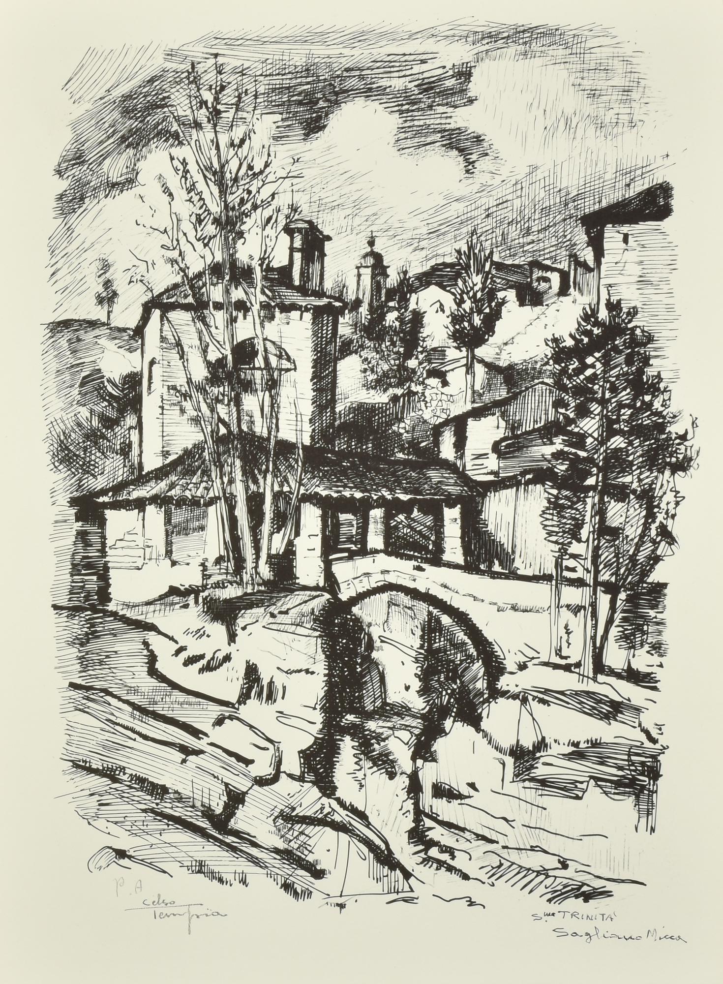 Celso Tempia PAESAGGIO BIELLESE litografia su carta, cm 50x35, es p.a. firma