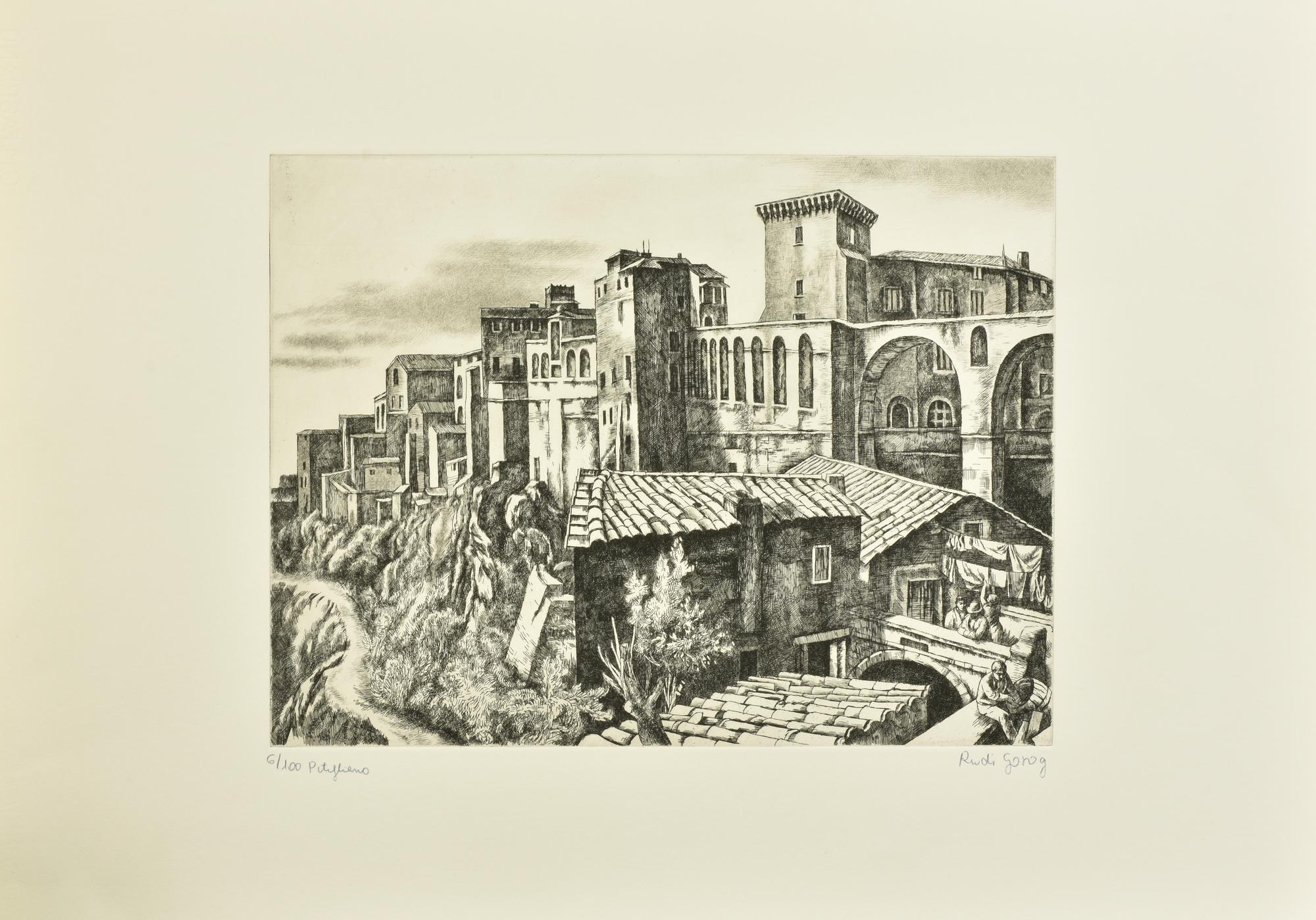 Rudi Gorog PITIGLIANO incisione su carta Fabriano, battuta cm 30x39,5, su...