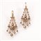 ciascuno realizzato con una monachella a cui è sospeso un motivo a goccia traforata con frange in brillanti di taglio vecchio, g 12