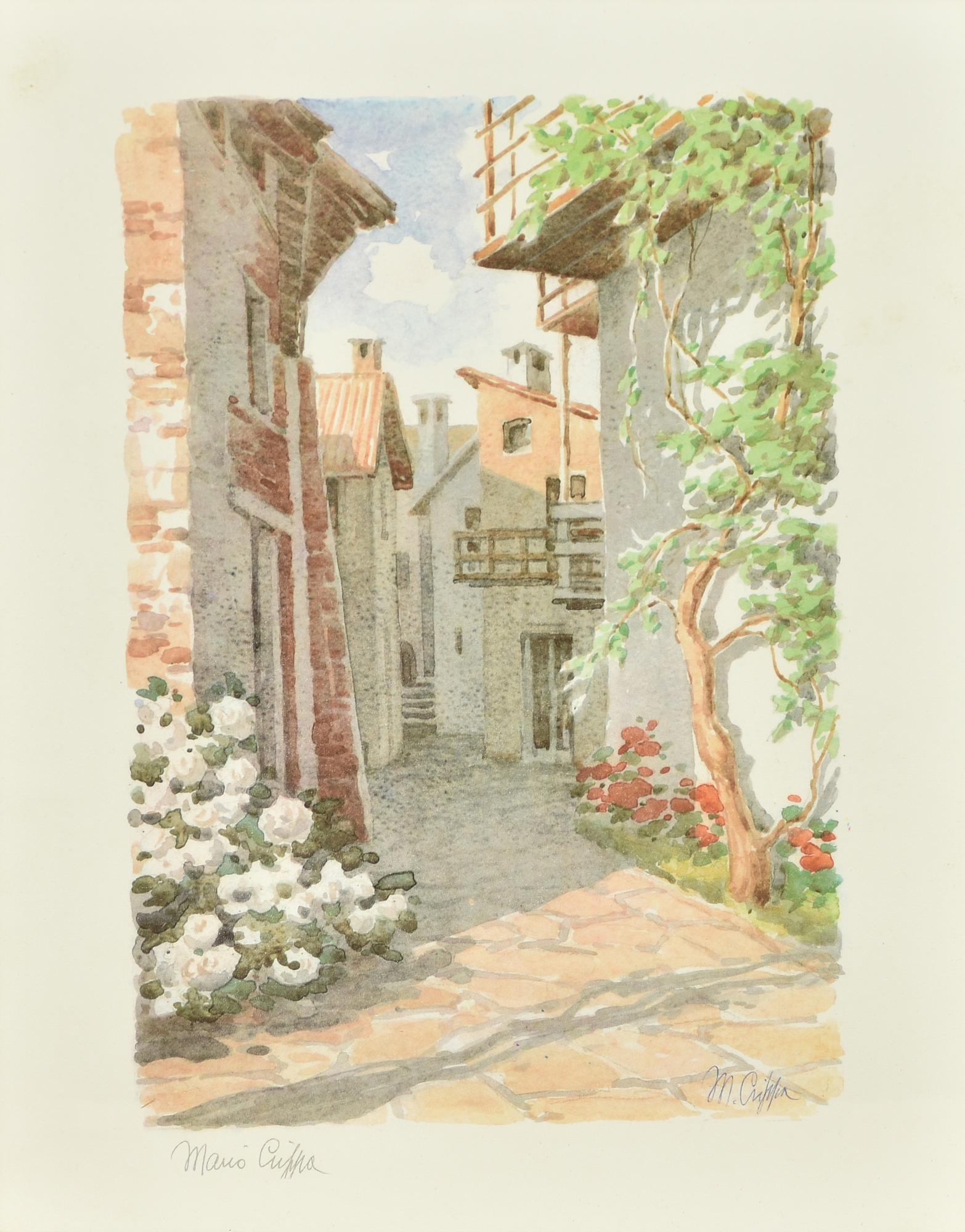 Mario Crippa STRADA DI PAESE serigrafia su carta, cm 30x25 firma e firma in...