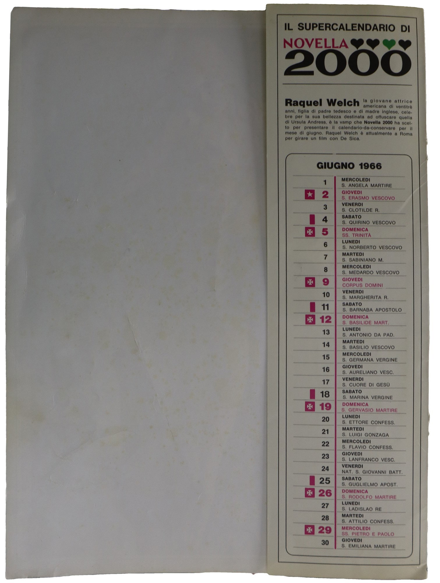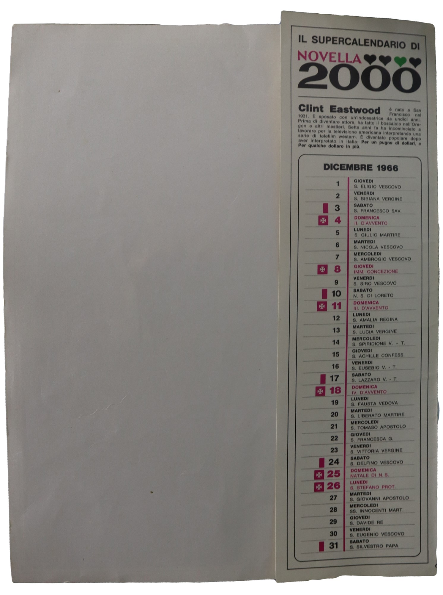Coppia Fotobusta Calendario ''Novella 2000' cm 30,5 x cm 26 Giugno e Dicembre 1966