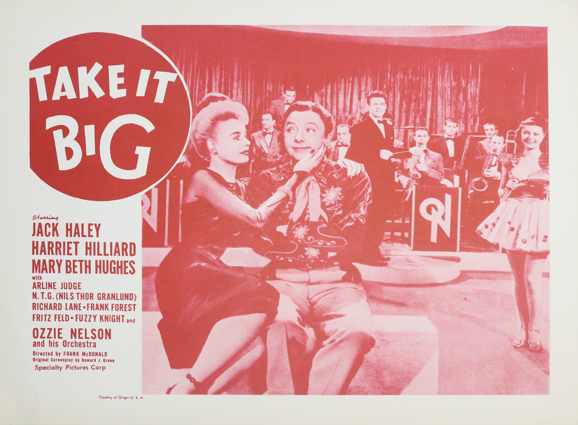 Lobby card ''Take it big'', 1950s cm 28 x cm 30 U.S.A. Ozzie Nelson and his Orchestra