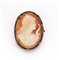 di forma ovale rispettivamente raffiguranti: profilo femminile in vesti classiche con montatura a spilla-pendente in oro giallo a basso titolo inciso a volute; profilo femminile in vesti classiche con farfalla montatura a spilla-pendente in oro giallo e microperle; profilo di Diana cacciatrice, montatura traforata in oro a basso titolo e argento traforati a volute (3)