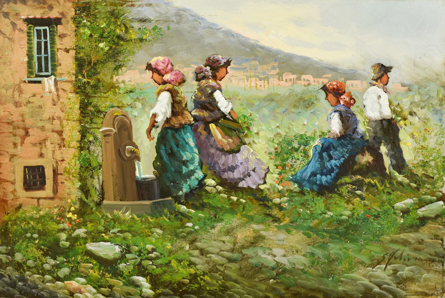 Ignoto ALLA FONTANA olio su tela, cm 50x70 firma